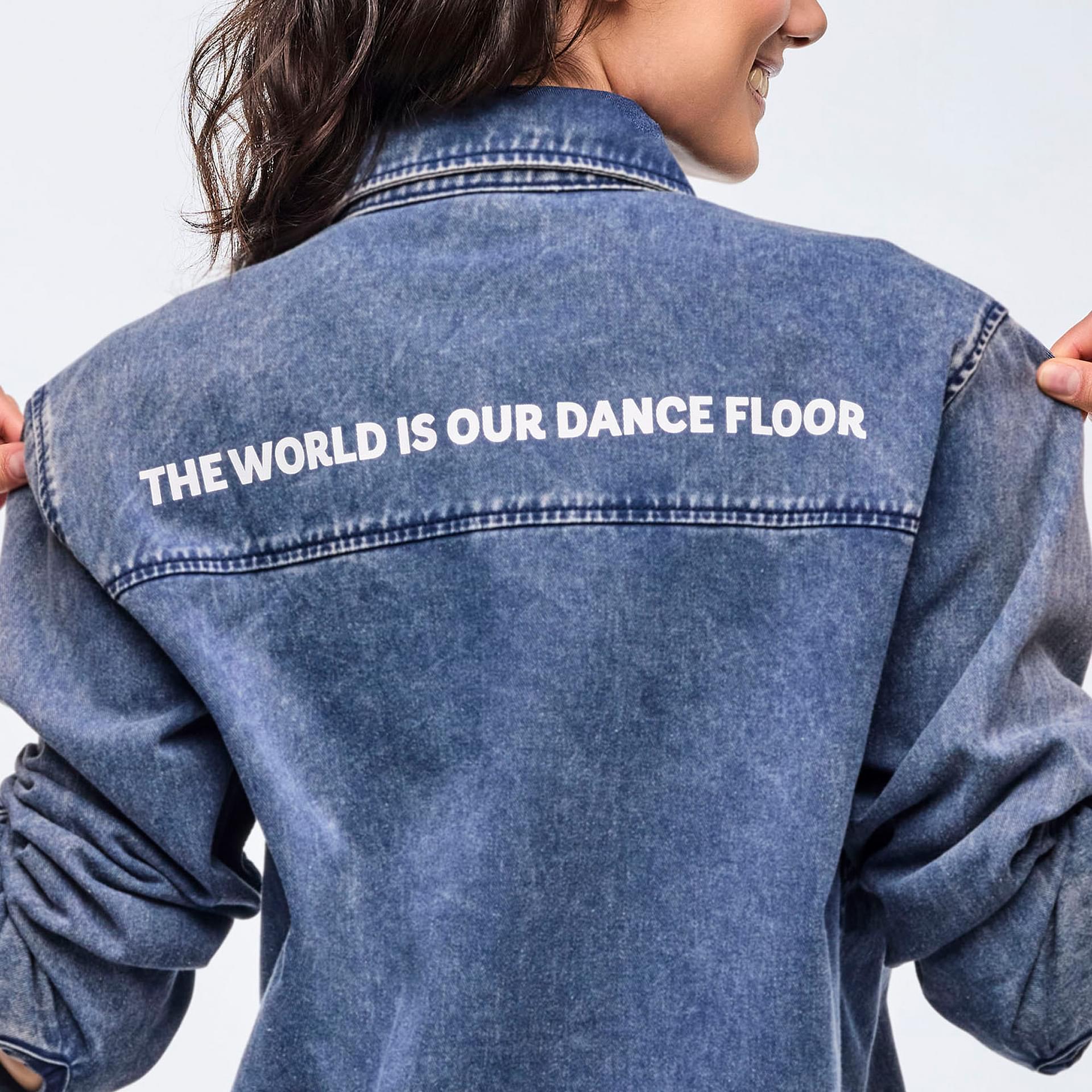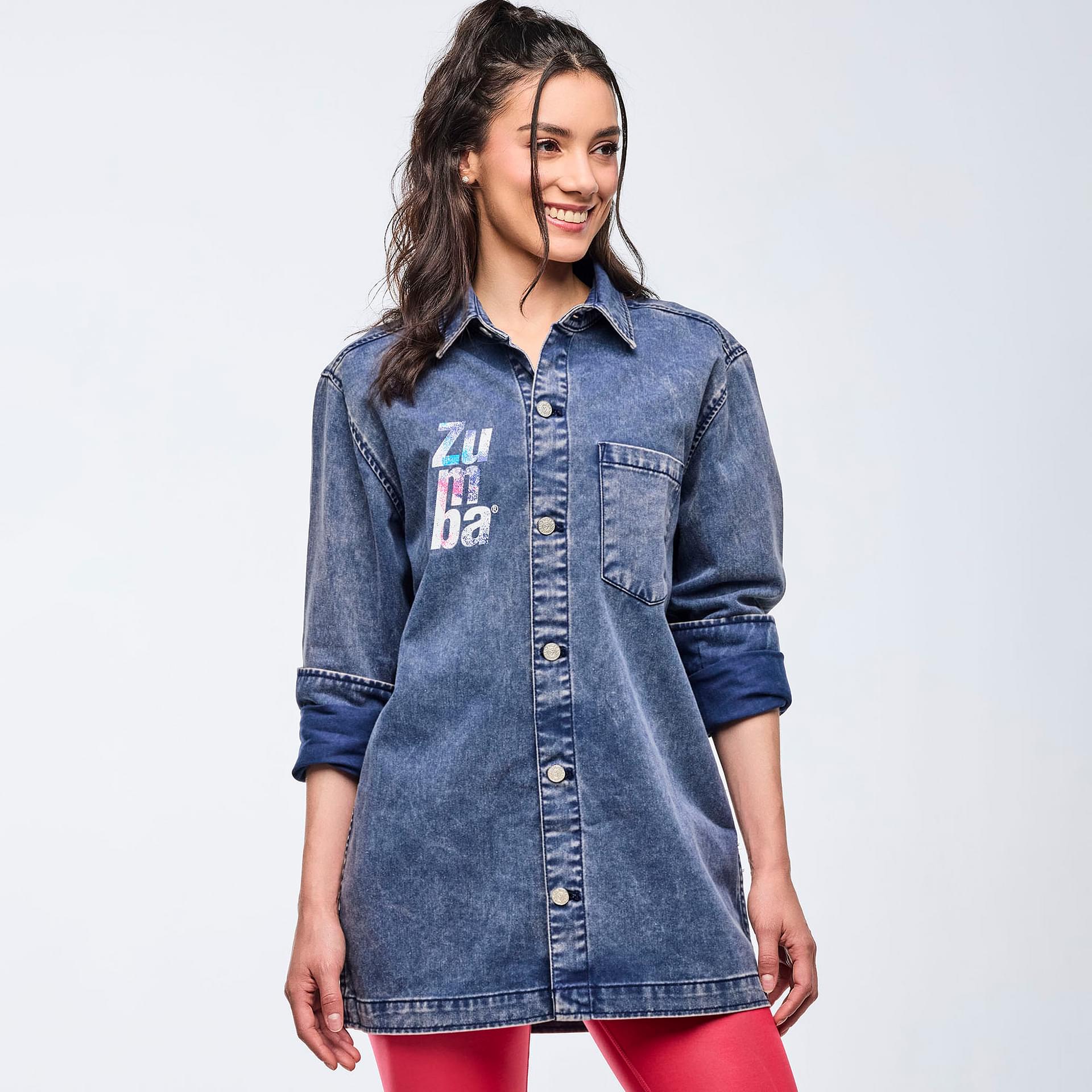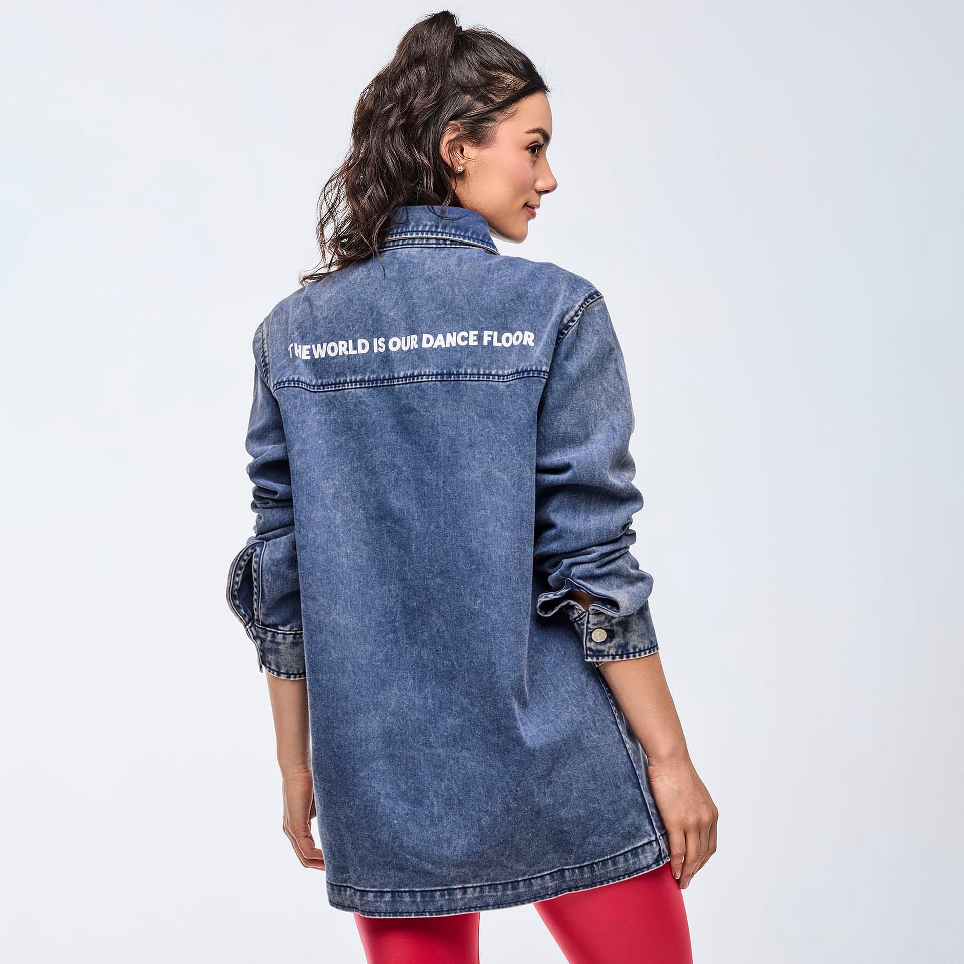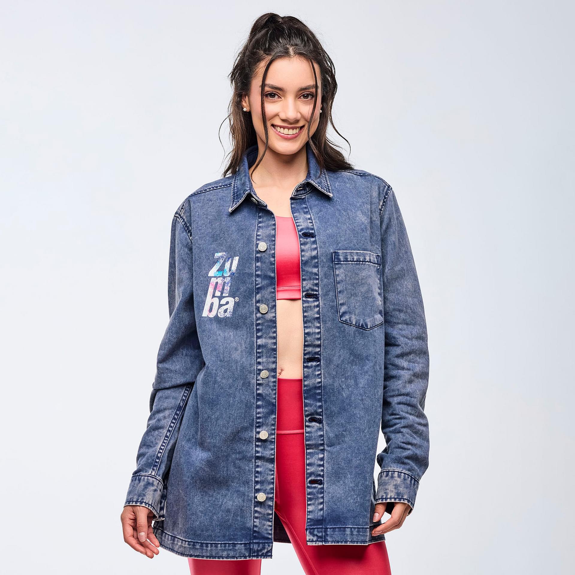Each shacket features a one-of-a-kind denim garment wash, ensuring that no two pieces are alike. This uniqueness not only enhances the visual appeal but also speaks to the individuality of the wearer. The Zumba-exclusive prints on both the front and back add a vibrant flair, making this shacket a standout addition to any wardrobe.