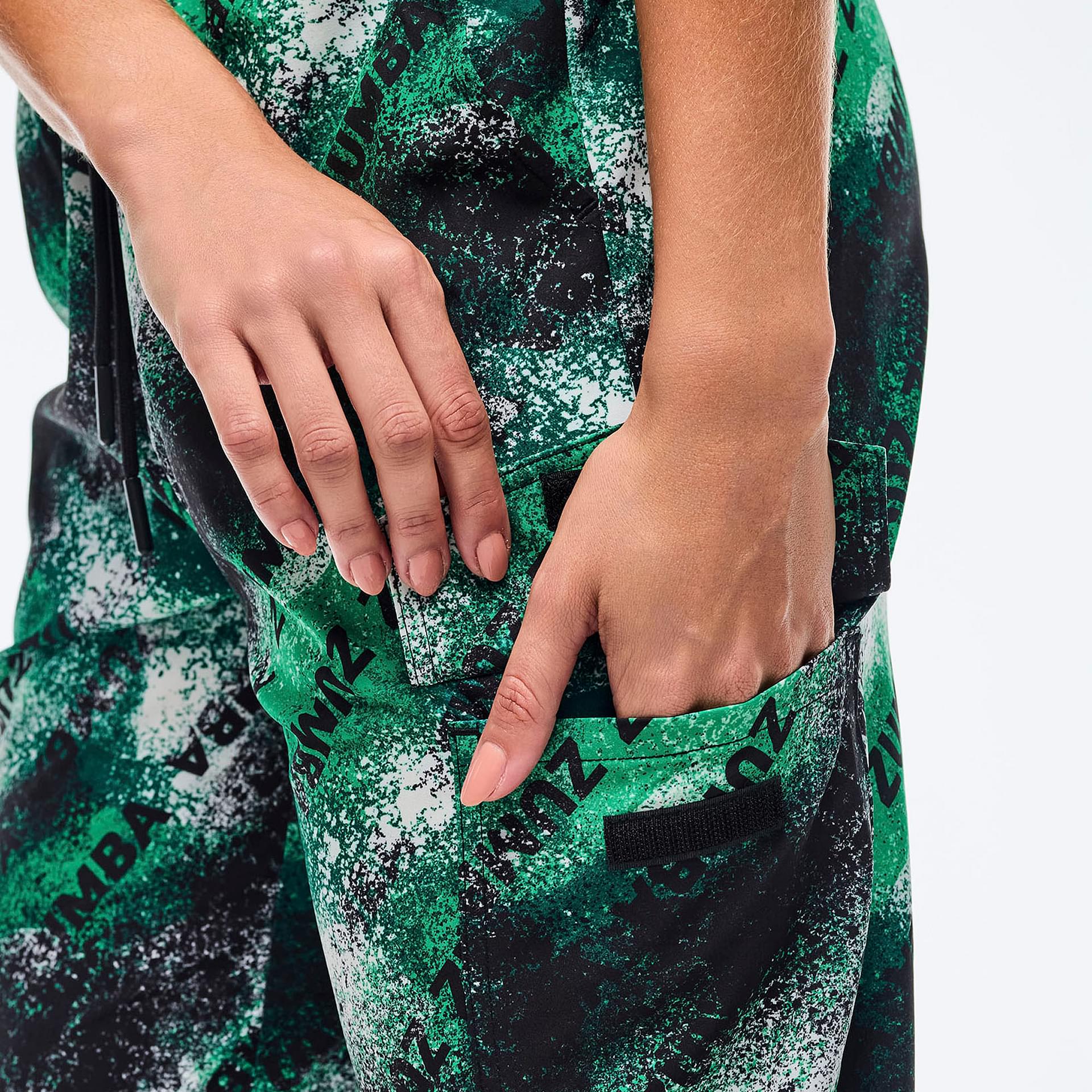 The Zumba-exclusive all-over print adds a vibrant touch, making these pants a standout piece in your activewear collection.