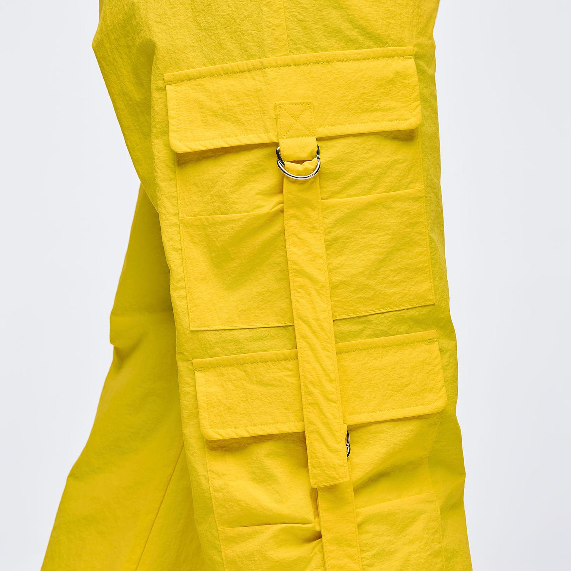 Crafted from high-quality swishy nylon fabric, these cargo pants offer a lightweight and breathable feel, ensuring comfort during any activity. The unique crinkle texture not only adds visual interest but also enhances the overall durability of the garment. With a composition of 100% nylon, these pants are designed to withstand the rigors of your active lifestyle while maintaining their shape and style.
