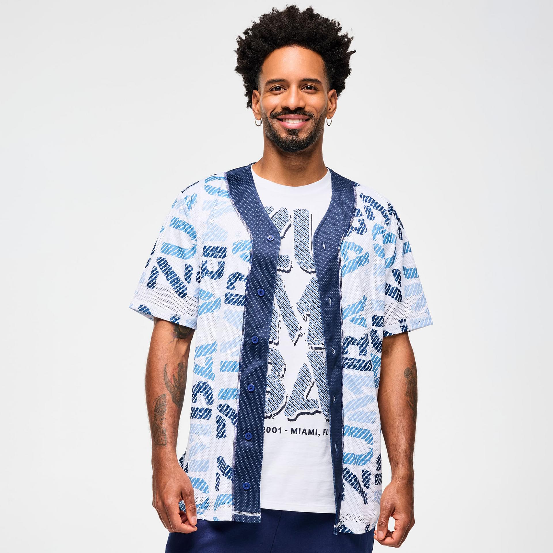 Featuring a Zumba-exclusive allover print, this jersey stands out in any setting, making it perfect for group classes or social gatherings. The vibrant design not only reflects your passion for fitness but also your unique sense of style. Whether you're dancing, running errands, or enjoying a day out, this jersey is the perfect companion.