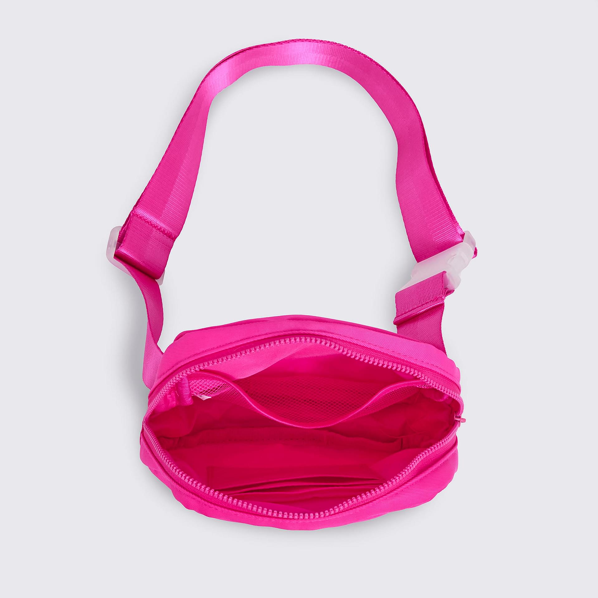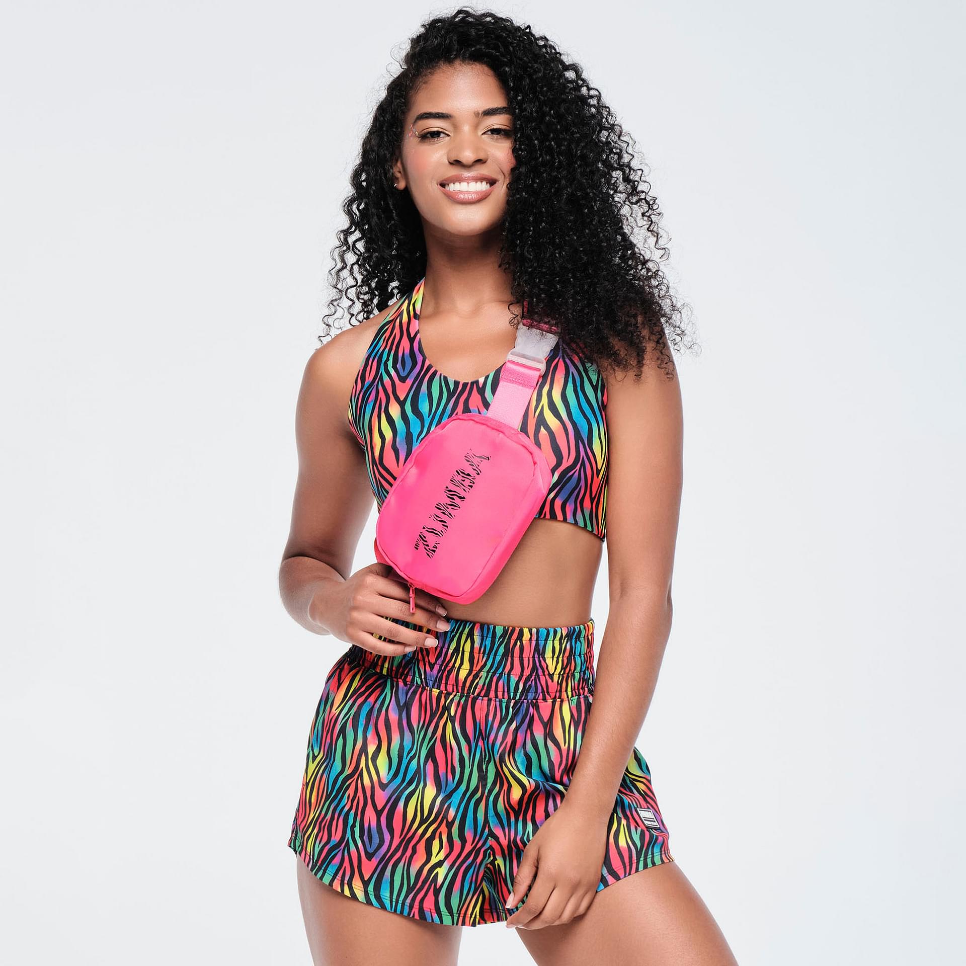 The interior features a lined body with an elastic top internal back pocket, ensuring your belongings stay organized and protected. The clear buckle closure adds a modern touch, making it easy to put on and take off. Adorned with a striking zebra-print filled ZUMBA logo on the front, this bag not only serves a practical purpose but also adds a pop of personality to your outfit.