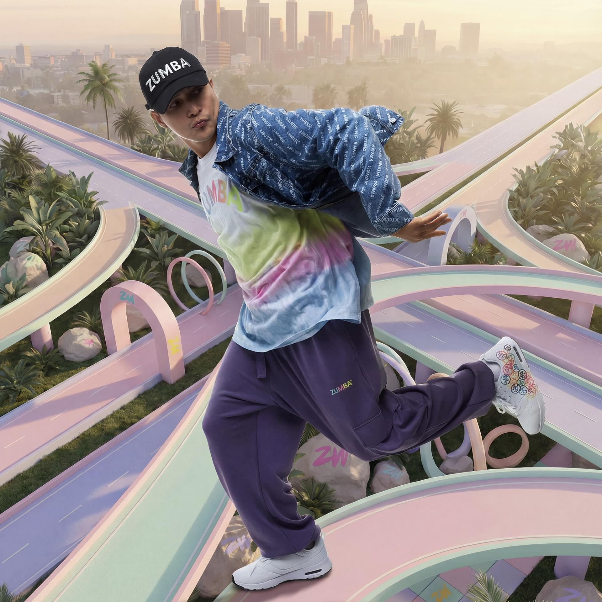 Functional design elements include an adjustable buckle and strap at the front waistband, allowing for a customizable fit that adapts to your body. The upper inseam pockets and side cargo pockets provide ample storage for essentials, making these pants as practical as they are stylish. The encased elastic waistband and bottom cuff ensure a secure fit, while the branded Zumba print on the hip adds a touch of flair.