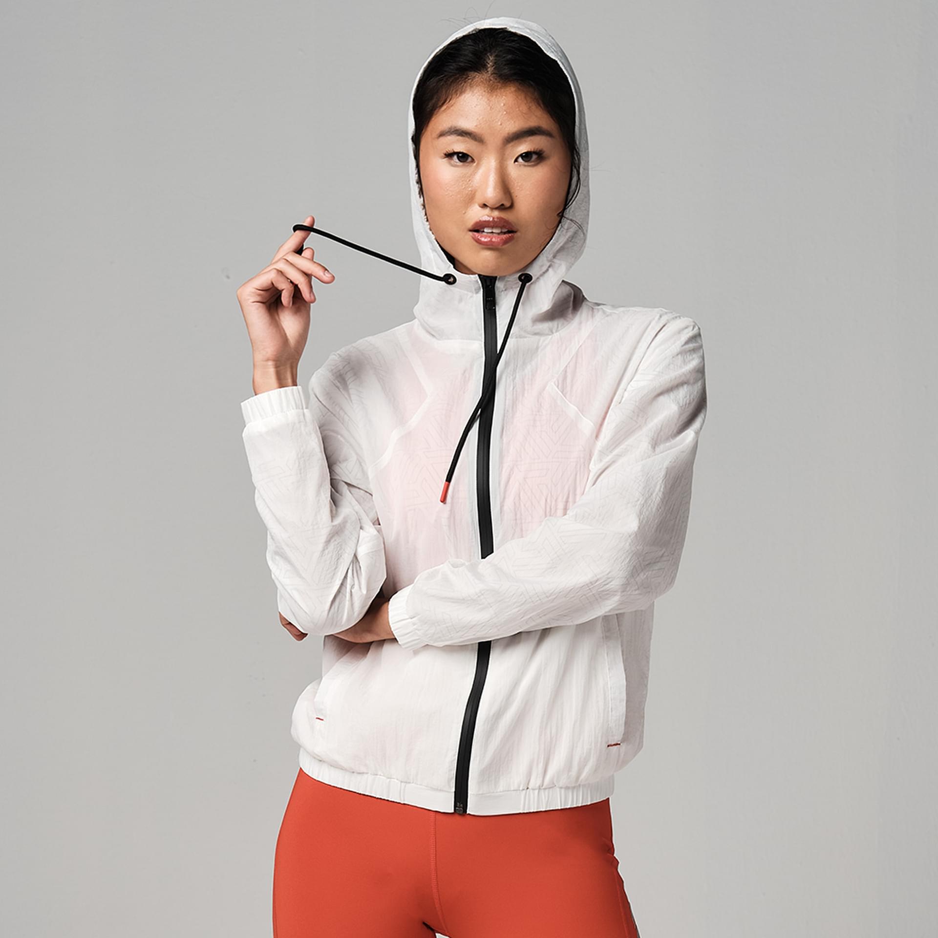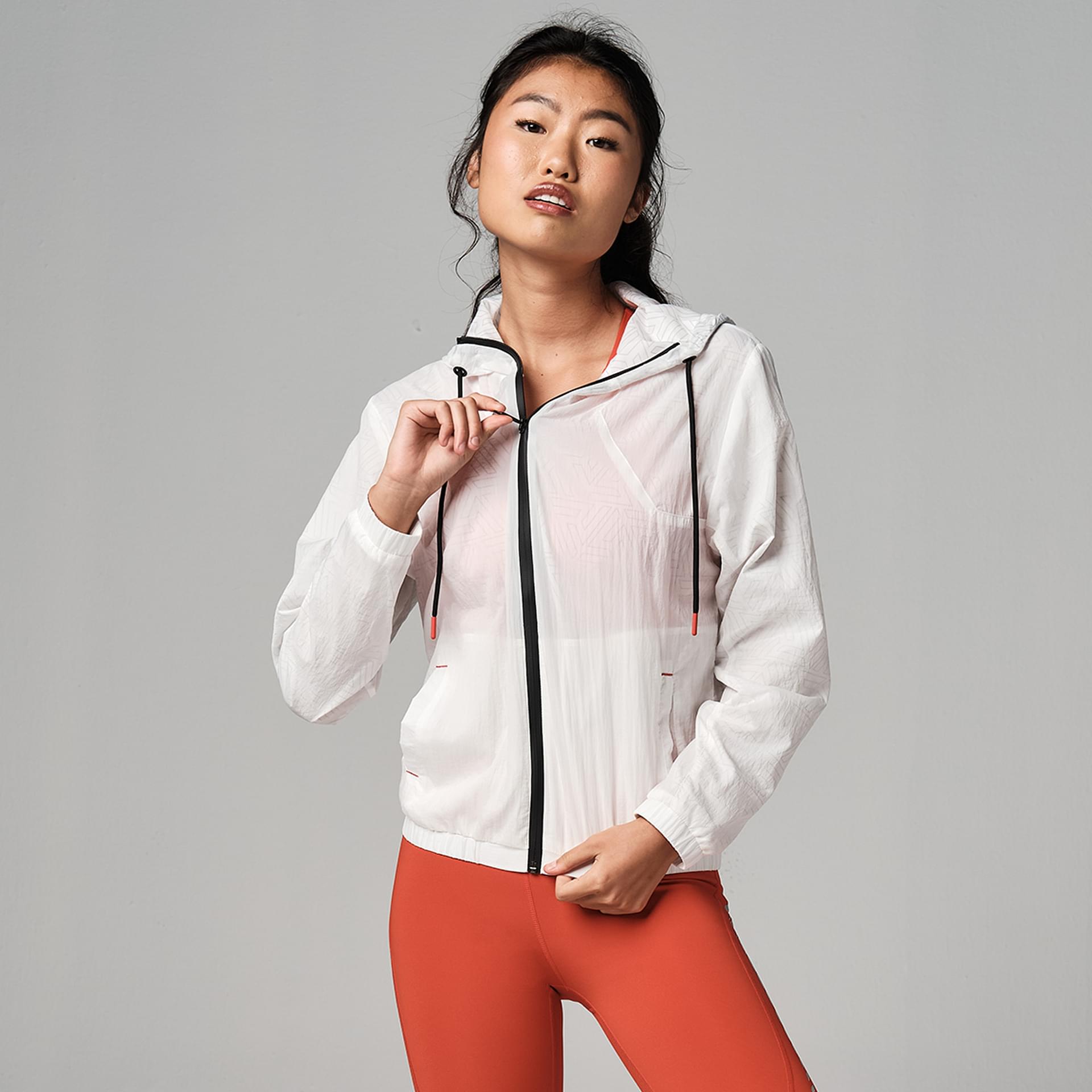 A perfect ultra-light layer to add to your outfit for a little extra warmth, and a lot of extra style! The linear printed interior creates a subtle effect through the white outer shell.