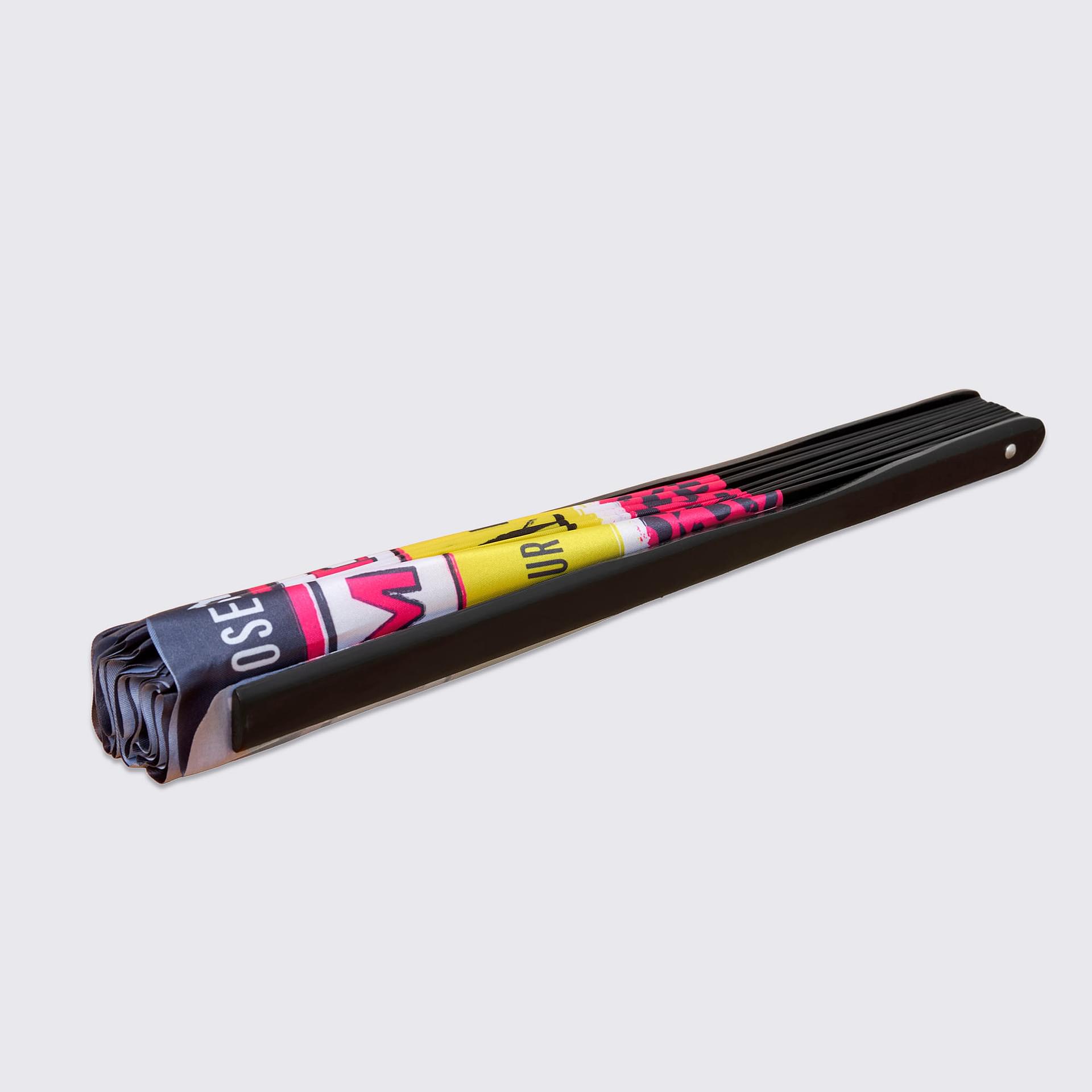 The fan sticks are made from 100% bamboo, offering a natural and sturdy support that complements the fan's dynamic design. Bamboo is not only eco-friendly but also adds a touch of elegance and strength, making it the perfect choice for this inspiring accessory.