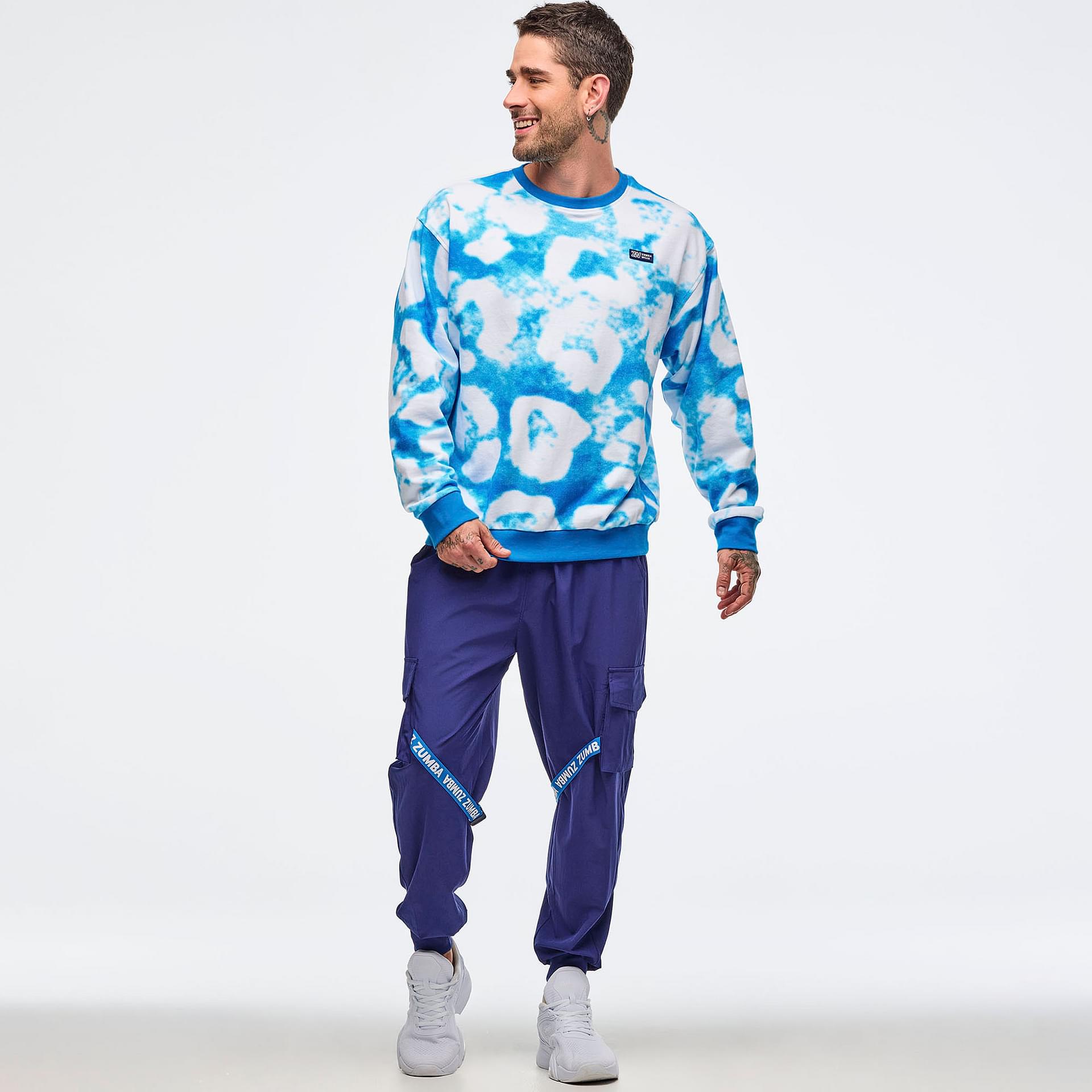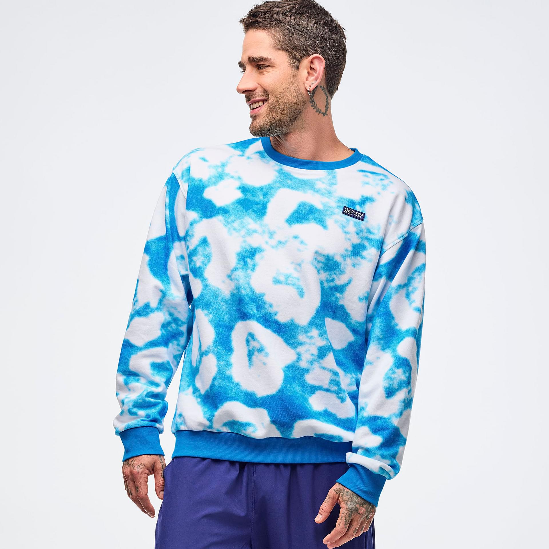 The unique faux tie-dye all-over print adds a vibrant touch, making this sweatshirt a standout piece in your activewear collection. The rib knit collar, cuffs, and bottom band enhance the overall fit while providing a snug feel that keeps the chill at bay. A Zumba Wear branded rubber patch on the front chest adds a subtle yet stylish detail, showcasing your love for the brand.