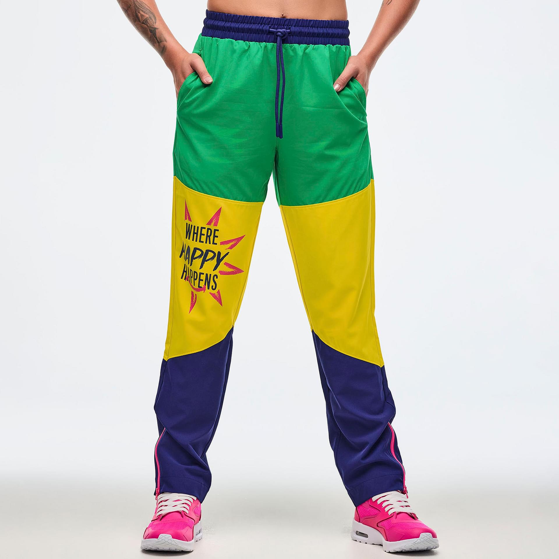 Adorned with exclusive Zumba graphics on color-blocked legs, these track pants not only serve a functional purpose but also make a bold fashion statement.