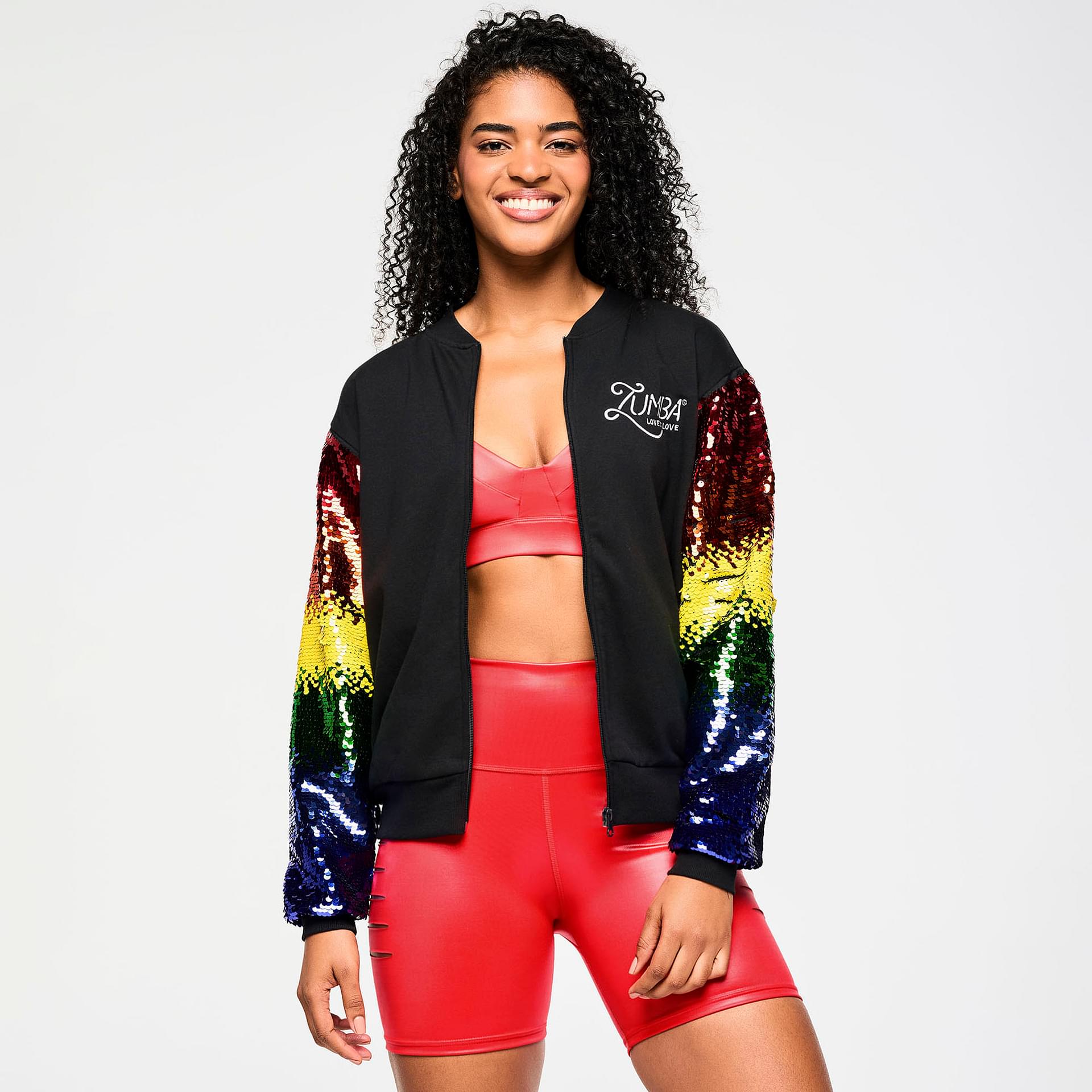 Elevate your activewear collection with the Zumba Bomber Jacket featuring stunning sequin sleeves. This jacket is designed for the modern woman who embraces both style and functionality in her fitness journey. Crafted from a luxurious blend of 59% cotton, 39% polyester, and 2% elastane, the fabric offers a soft, breathable feel while providing the perfect amount of stretch for unrestricted movement.