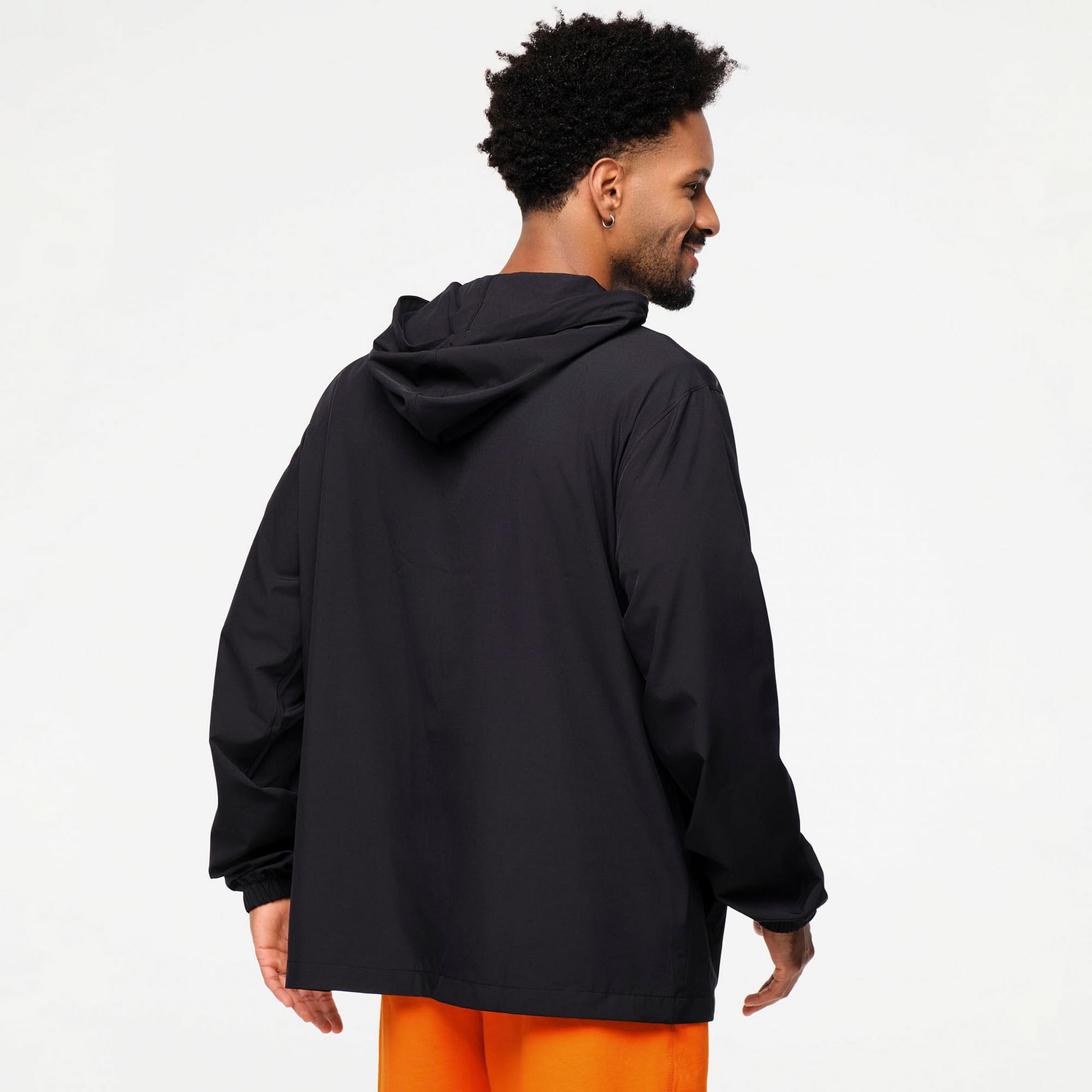 Featuring a zip front closure and a functional hood with drawcords, this windbreaker is designed to adapt to your needs. The front welt pockets provide convenient storage for your essentials, while the encased elastic at the sleeve cuffs ensures a snug fit to keep the wind at bay. A branded rubber patch on the front left chest adds a touch of style, making this jacket not just functional but also fashionable.