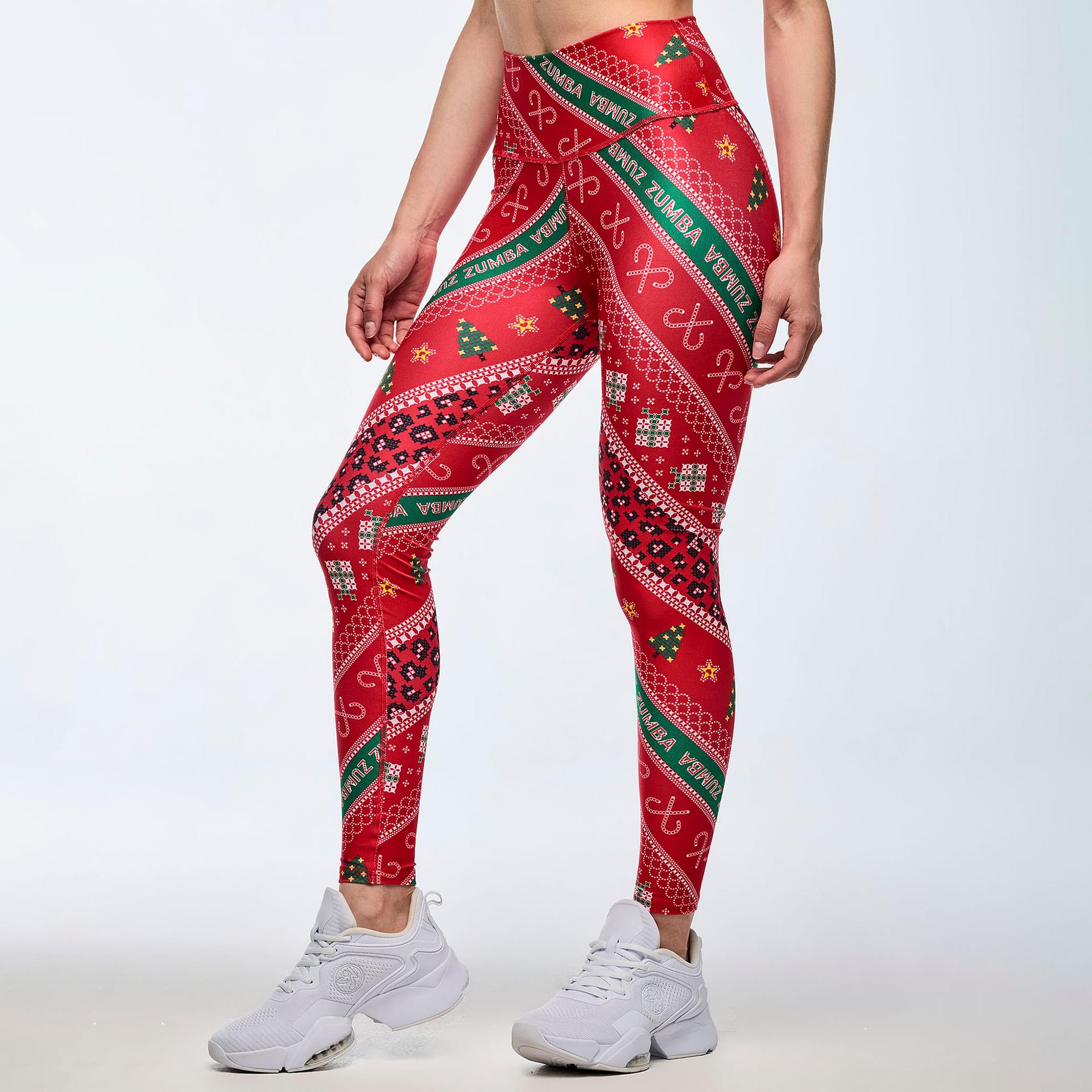 Experience the perfect blend of style and performance with the Zumba Holiday High Waisted Ankle Leggings. Designed specifically for the dynamic woman, these leggings feature a high-waisted silhouette that not only flatters your figure but also provides exceptional support during your most vigorous activities. The slim fit and ankle length ensure a sleek look while allowing for maximum mobility.