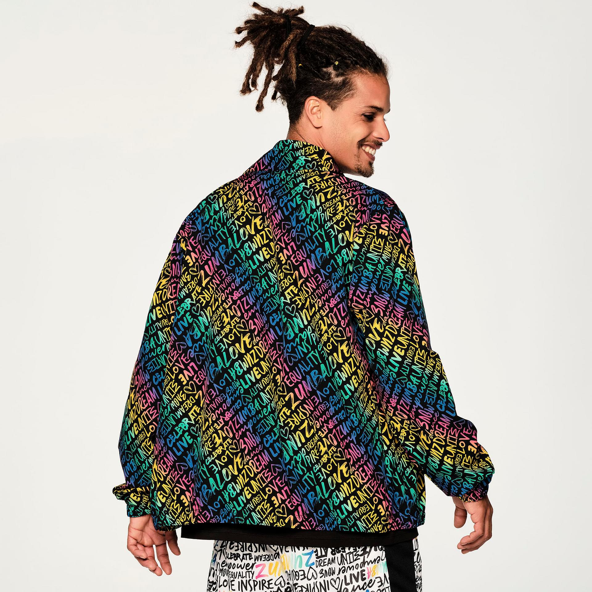 Experience the ultimate joy in movement with the Zumba Joy Zip-Up Jacket. This unisex mock neck woven jacket is designed for both men and women who seek comfort and style in their active wear. The easy fit silhouette and long length provide a flattering look for any body type.