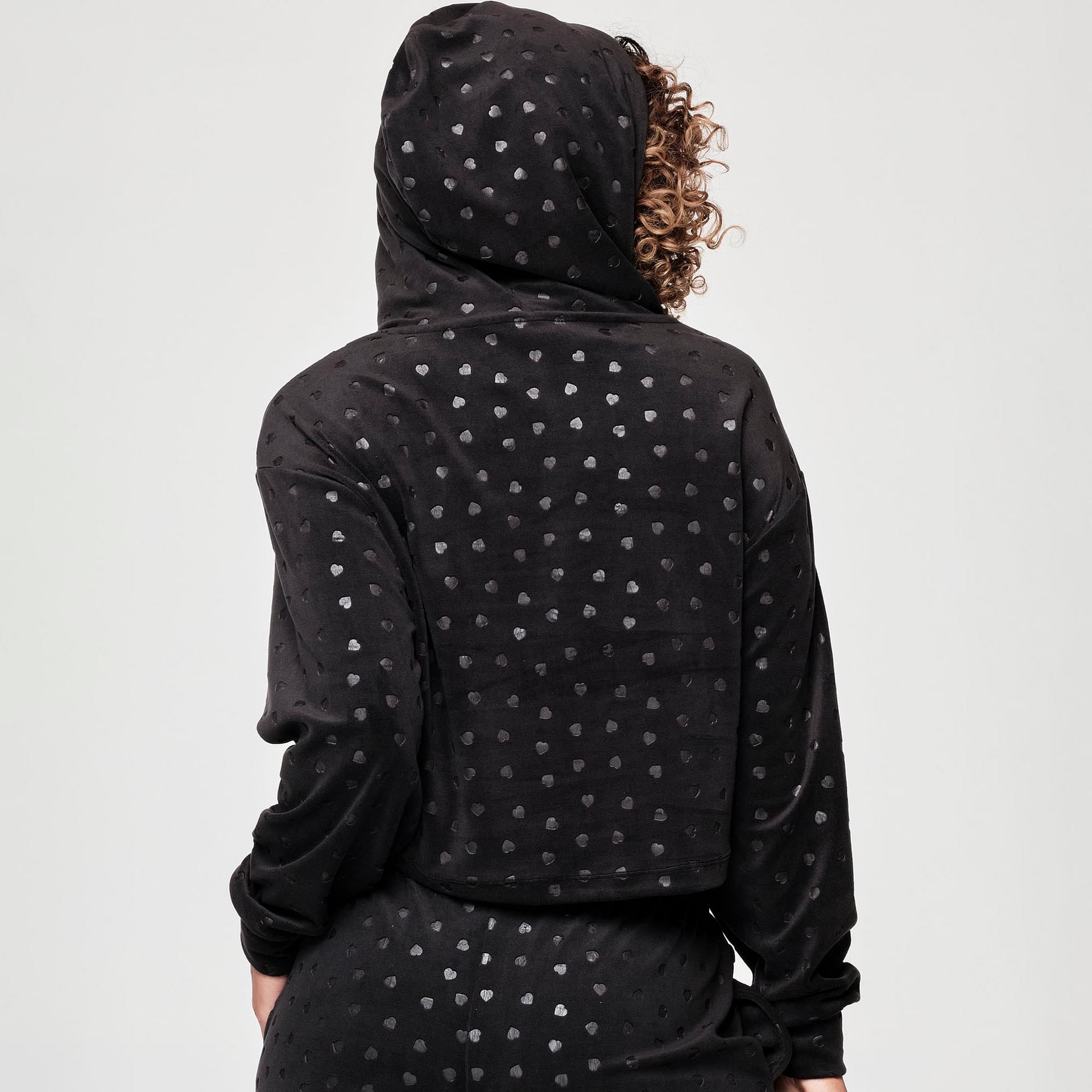The Zumba Kiss Crop Sweatshirt is the perfect combination of comfort and style. Designed with the active woman in mind, this oversized crop sweatshirt is made from super soft velour fabric that feels luxurious against the skin. The fabric is not only incredibly soft, but it also features embossed hearts for a unique and eye-catching look.