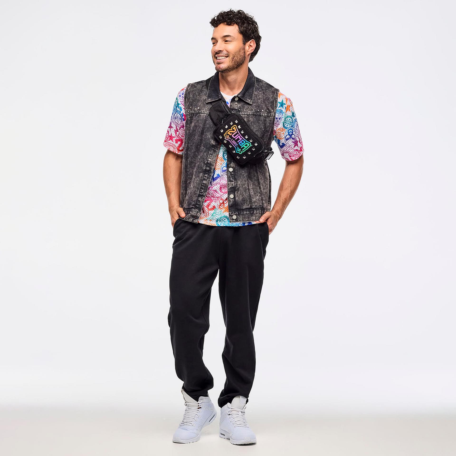 The standout feature of this bag is its vibrant front artwork, showcasing a multicolor gradient of the Zumba Libre logo, beautifully accented by silver pyramid studs. This eye-catching design not only elevates your outfit but also reflects your passion for movement and dance.