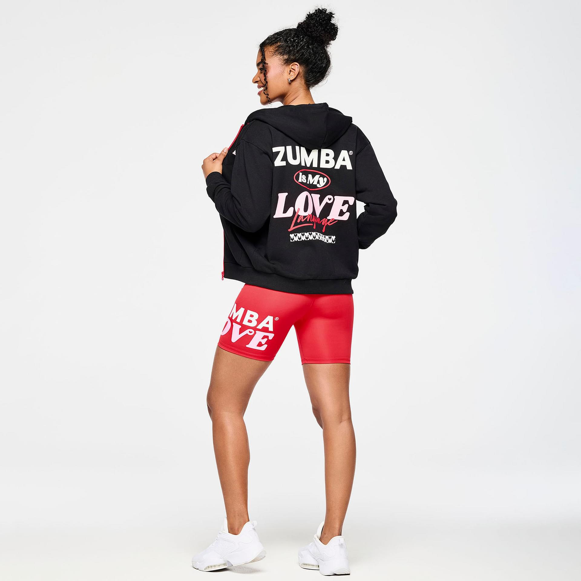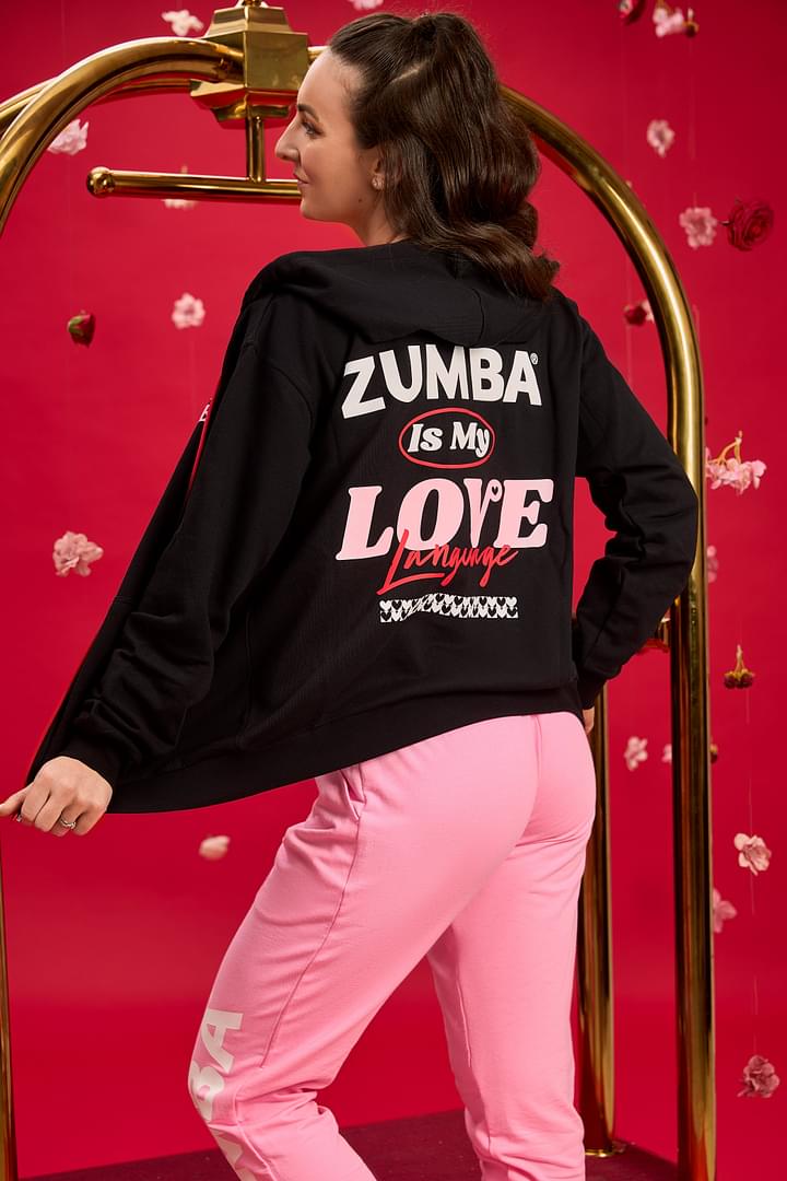 Adorned with exclusive Zumba graphic prints on both the front and back, this hoodie showcases your passion for movement and self-expression. Whether you're hitting the dance floor or enjoying a cozy day at home, the Zumba Love Zip Up Hoodie is designed to inspire confidence and joy in every step you take.