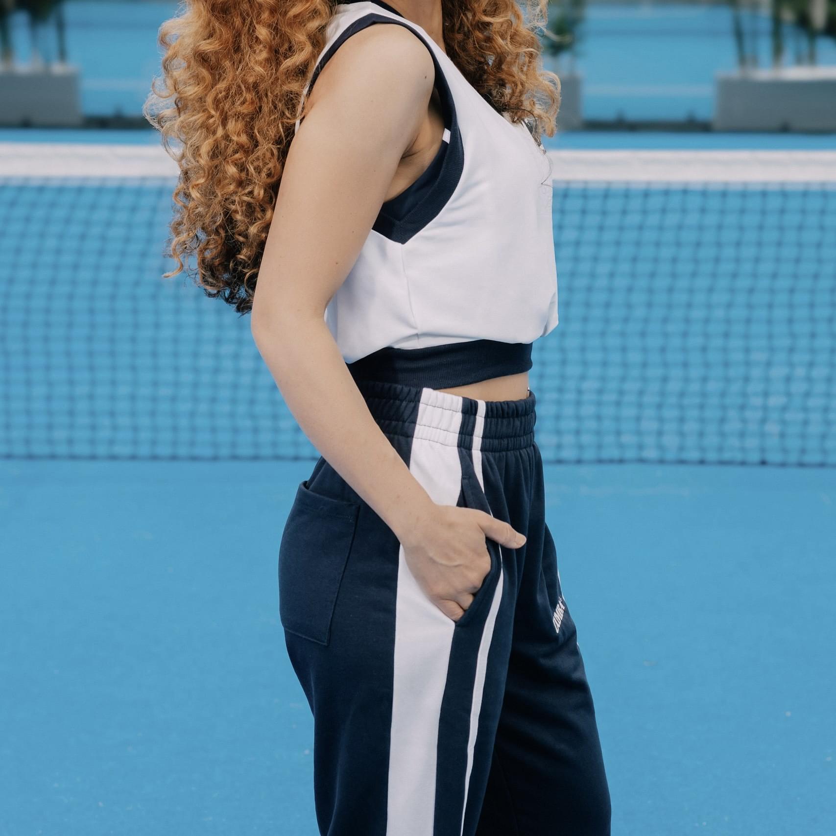 Distinctive fabric inserts and stripe details along the side legs elevate the aesthetic, creating a sporty yet chic vibe that transitions seamlessly from workout sessions to casual outings.