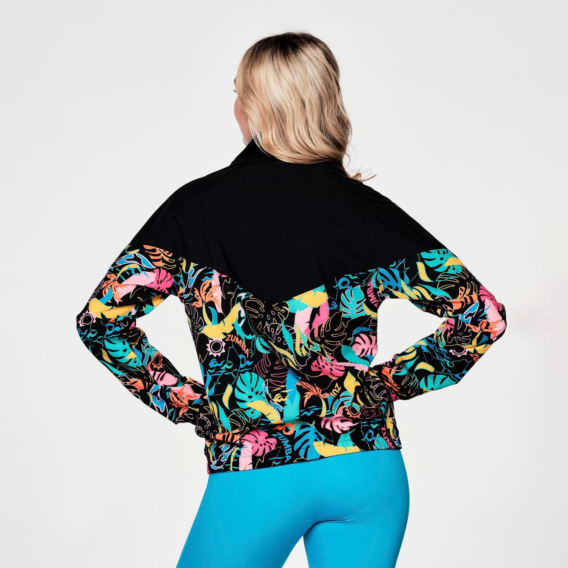 The Zumba Palm Party Jacket is the perfect blend of style and functionality, designed specifically for active individuals like you. This easy-to-wear, long zip front jacket is a must-have addition to your activewear collection.