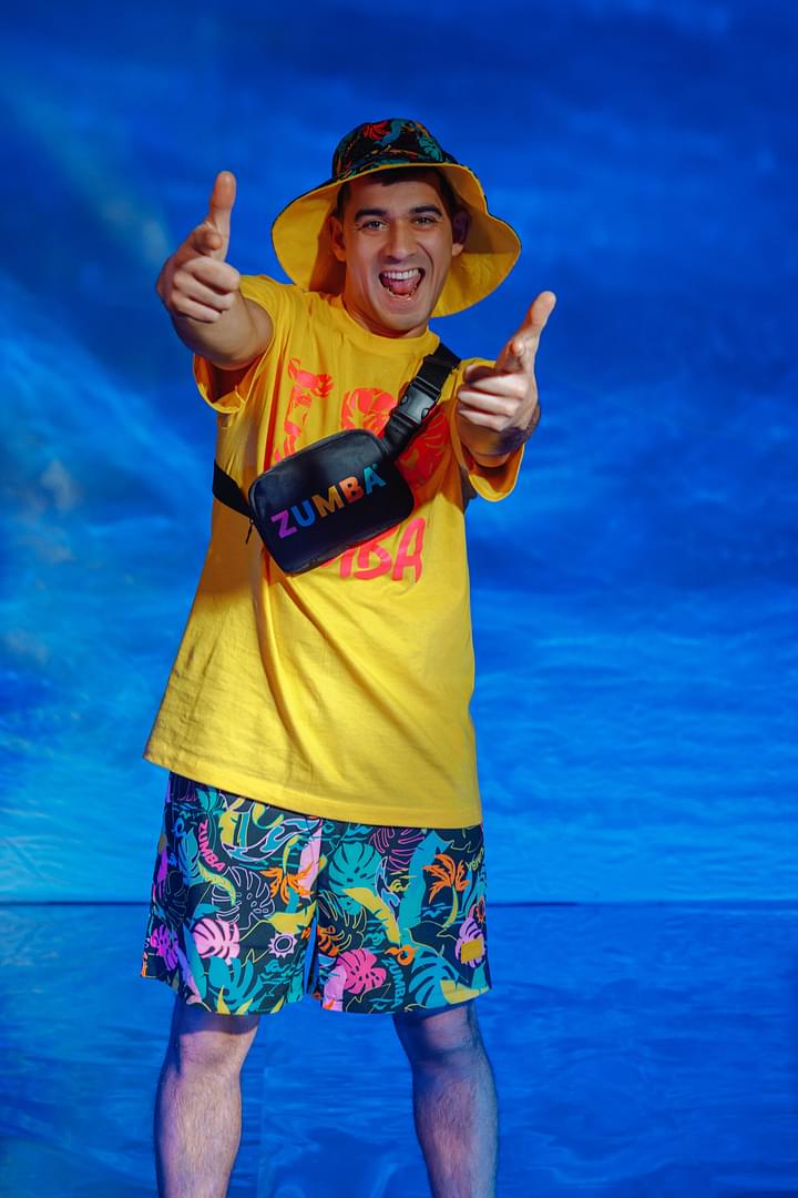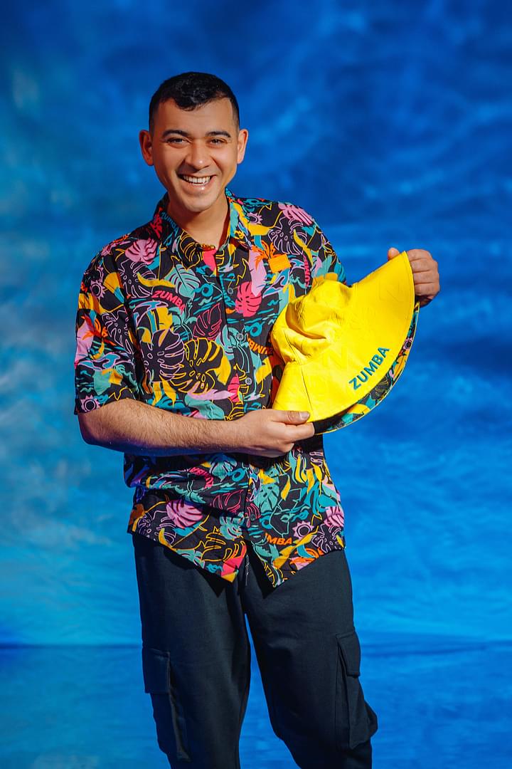- Side #1 features a tropical terry cloth woven pattern with a pop of Zumba embroidery