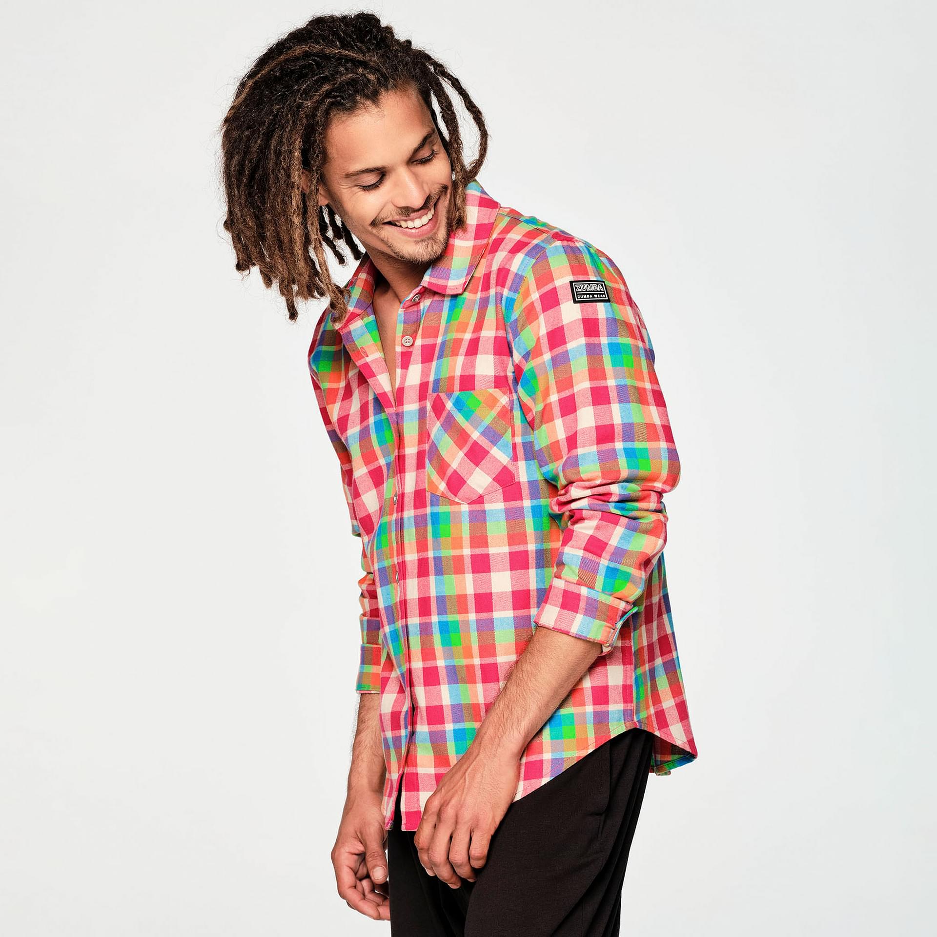 Elevate your active wear collection with the Zumba Plaid Pop Button Down. Whether you're hitting the gym or running errands, this shirt will keep you looking stylish and feeling comfortable all day long.
