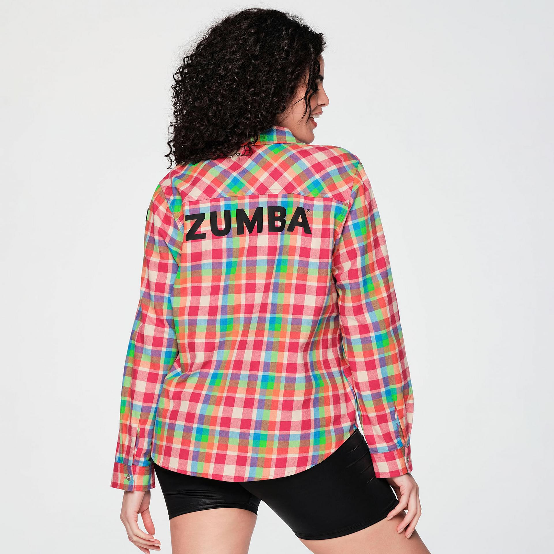 Step up your active wear game with our Zumba Plaid Pop Button Down. This fan favorite flannel button up is designed for both style and comfort, making it a must-have in your wardrobe.