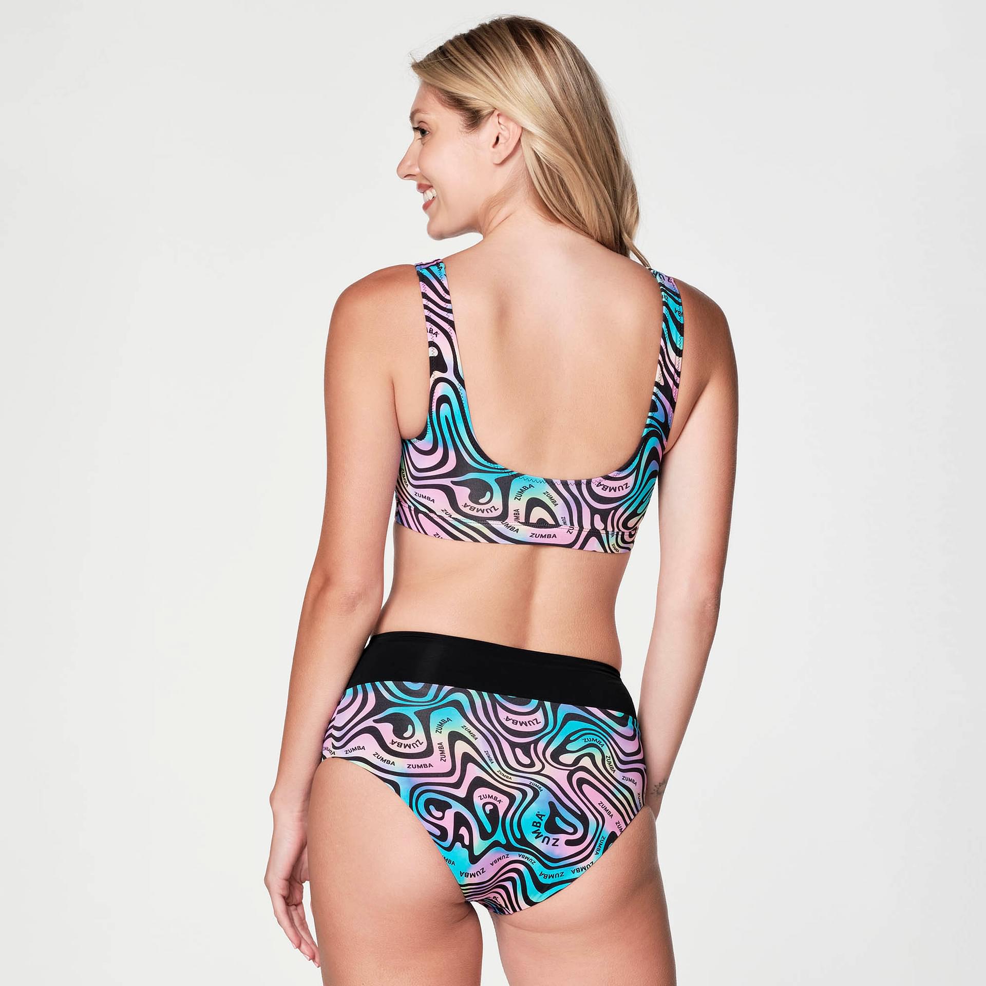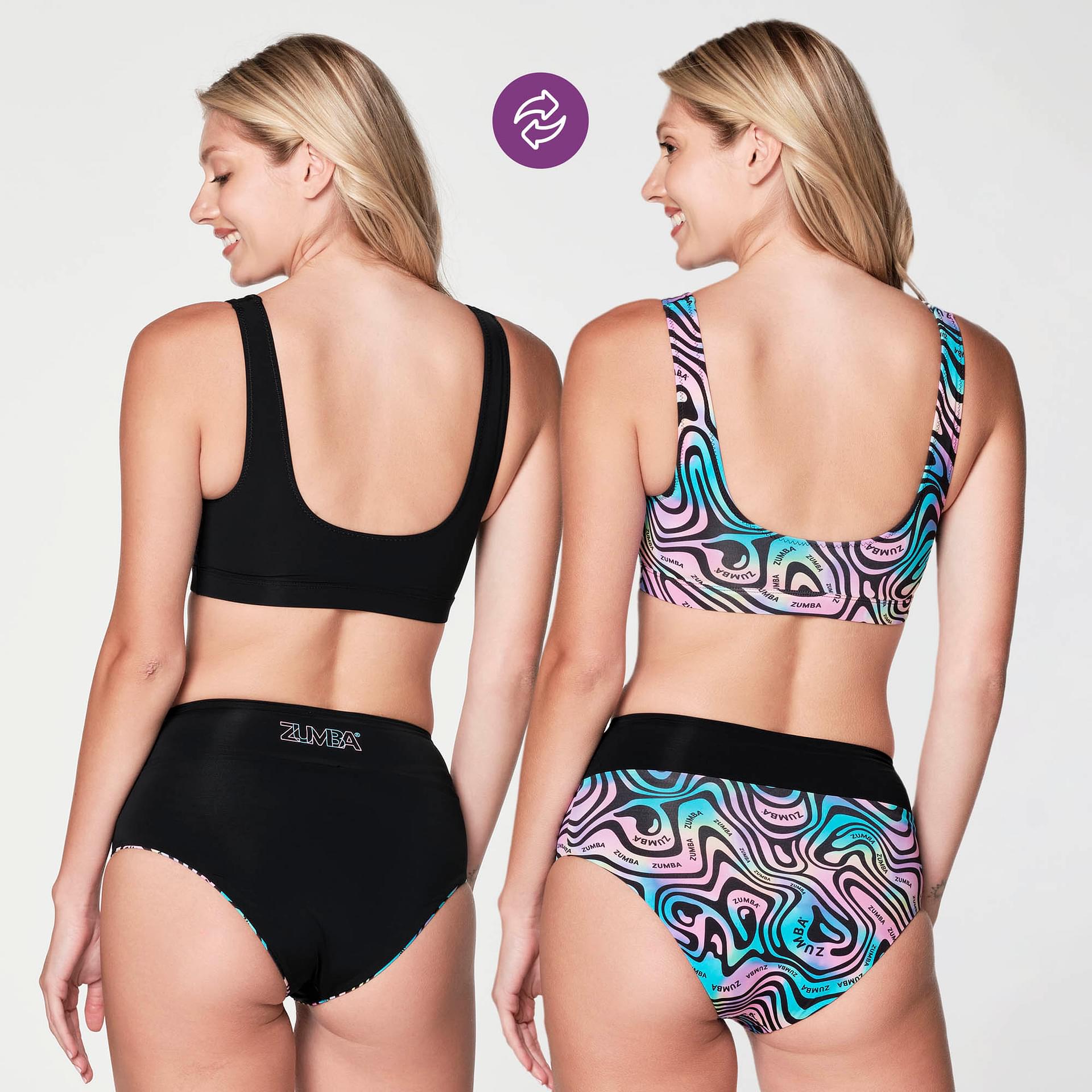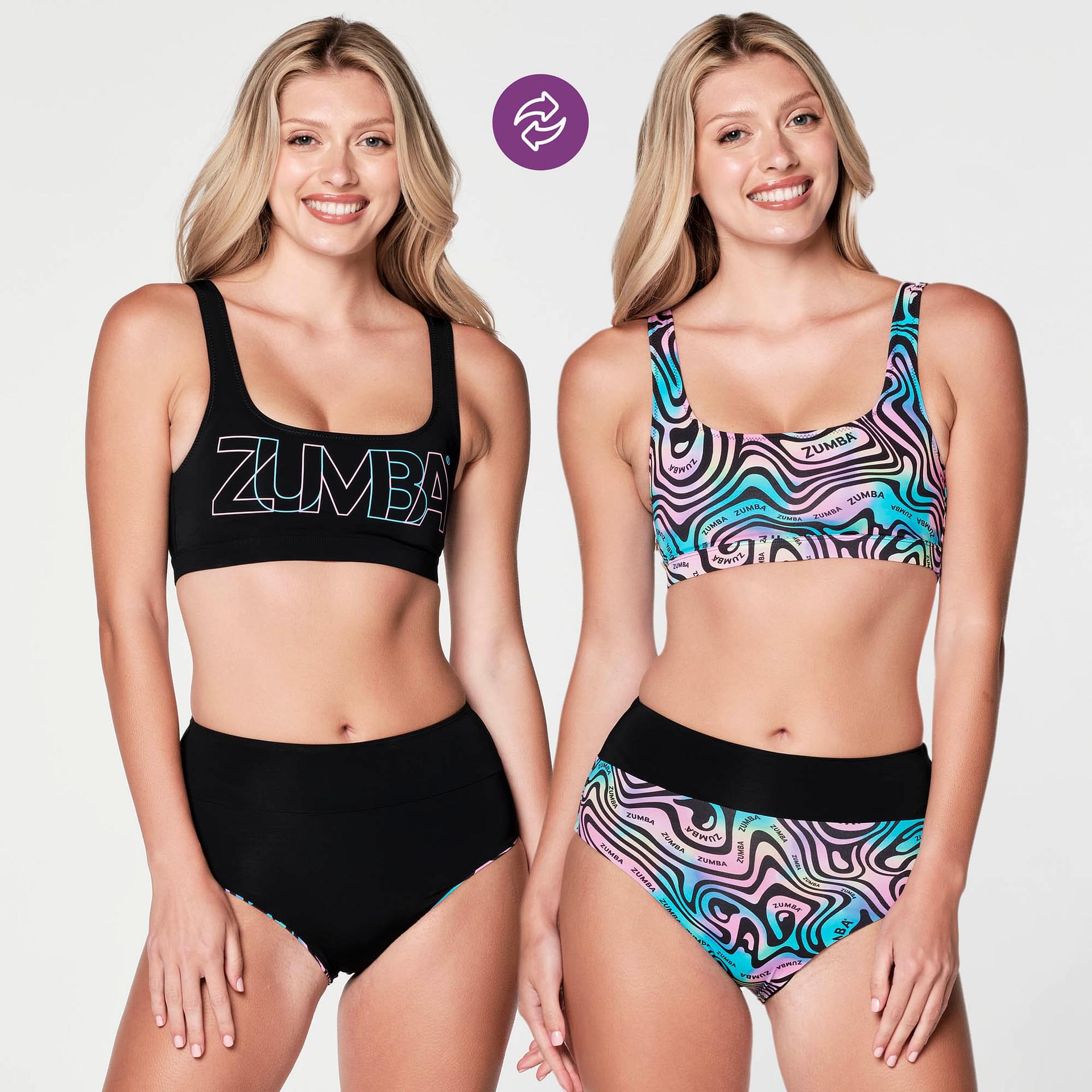 The Zumba Reversible Swim Active Brief has been thoughtfully designed to be universally flattering. The high waisted, banded sporty style is complimented with a medium-high cut leg and moderately cheeky bum coverage.