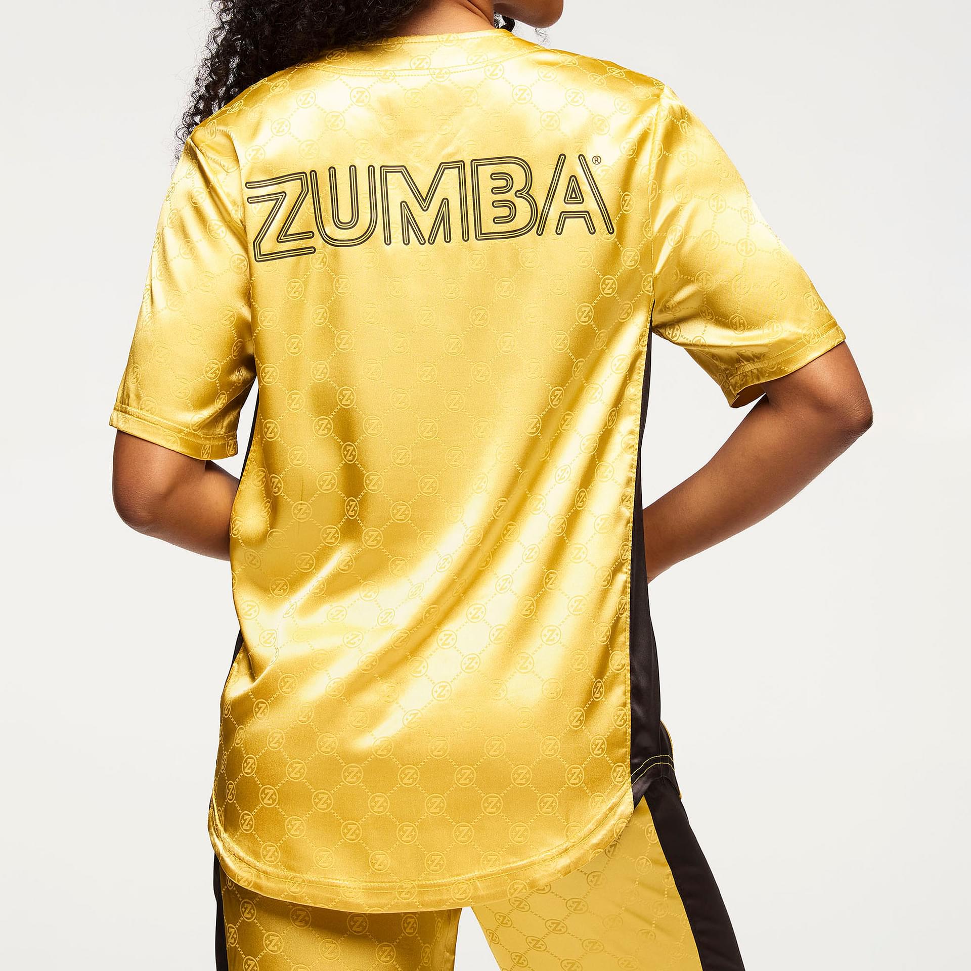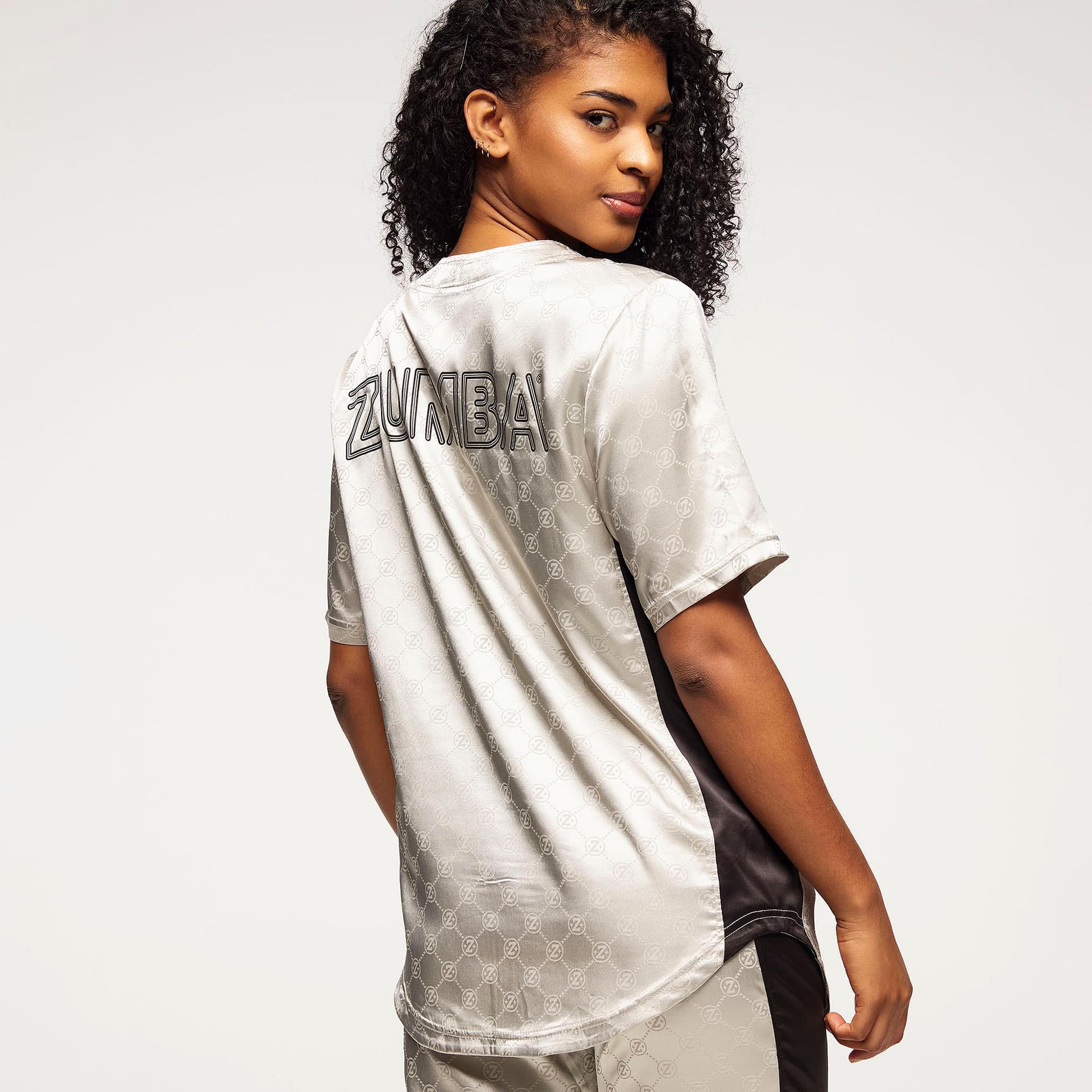 The center front placket opening with functional buttons adds a classic touch, while the side panels create a flattering shape that complements various body types. Adorned with Zumba-exclusive jacquard artwork, this jersey showcases a vibrant and dynamic design that reflects the energy of the Zumba community. The large Zumba artwork on the back body serves as a bold statement, allowing you to showcase your passion for dance and fitness.