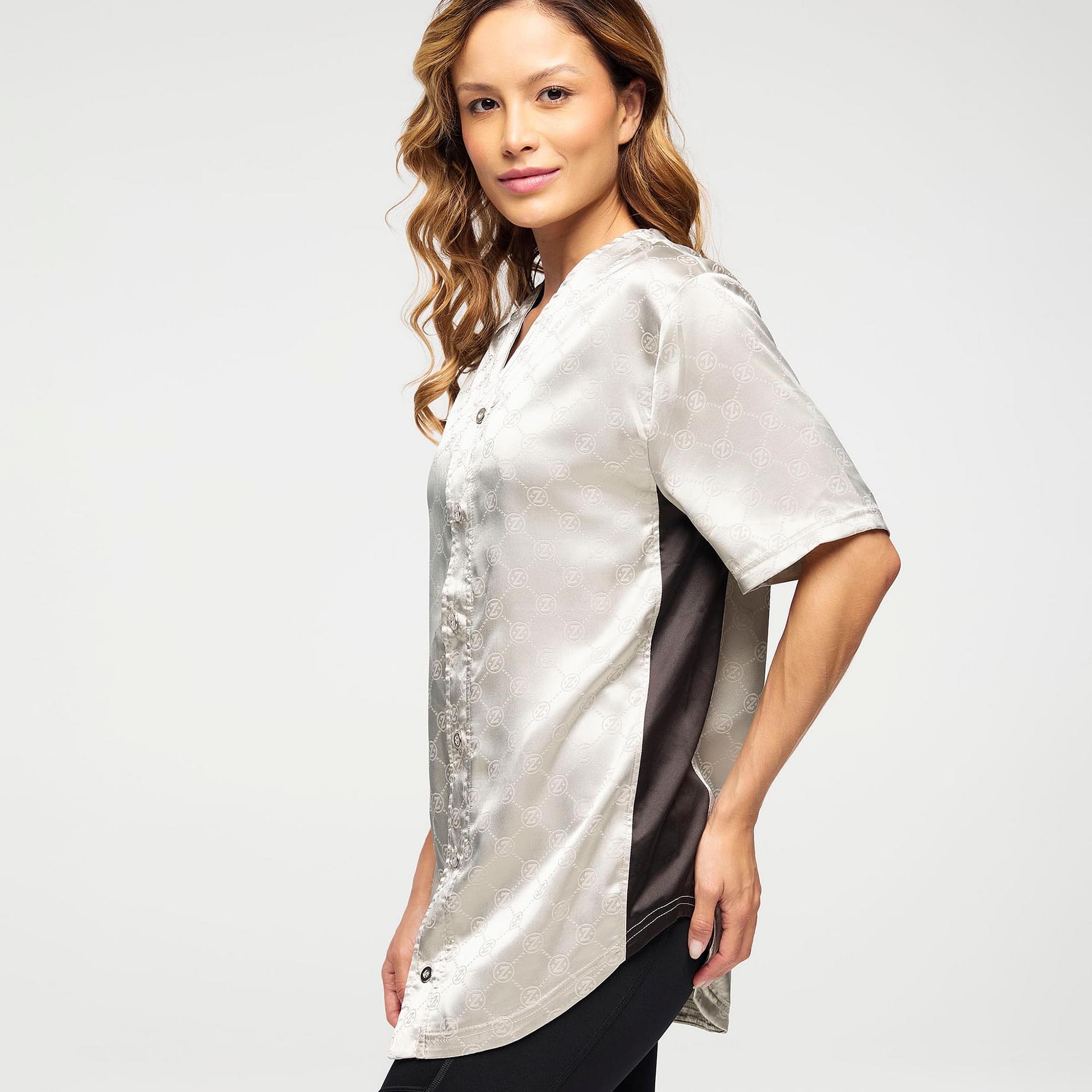 Elevate your activewear collection with the Zumba Runway Baseball Button Up Jersey in Silver. This stylish jersey is designed specifically for women who embrace movement and express their individuality through fashion. The easy fit silhouette ensures comfort while allowing for a full range of motion, making it perfect for both dance classes and casual outings.