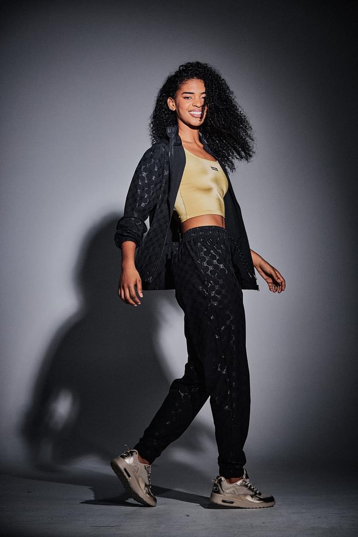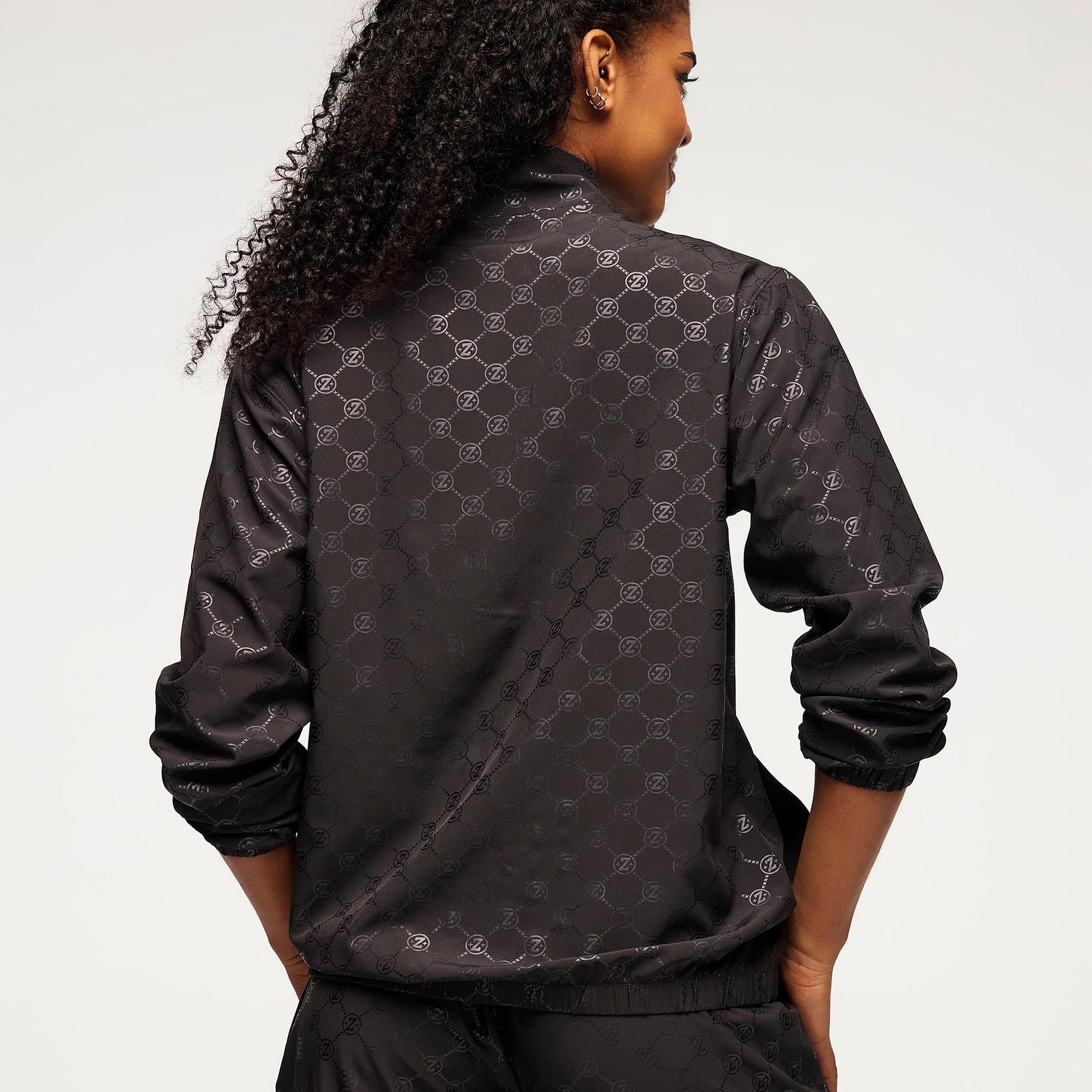 Crafted from a premium woven stretch fabric, composed of 90% polyester and 10% spandex, this jacket offers exceptional flexibility and durability. The lightweight material ensures breathability, allowing you to stay cool while you dance, run, or engage in any high-energy activity. The tonal matte Zumba-exclusive allover printed fabric adds a unique flair, making this jacket a standout piece in your activewear collection.