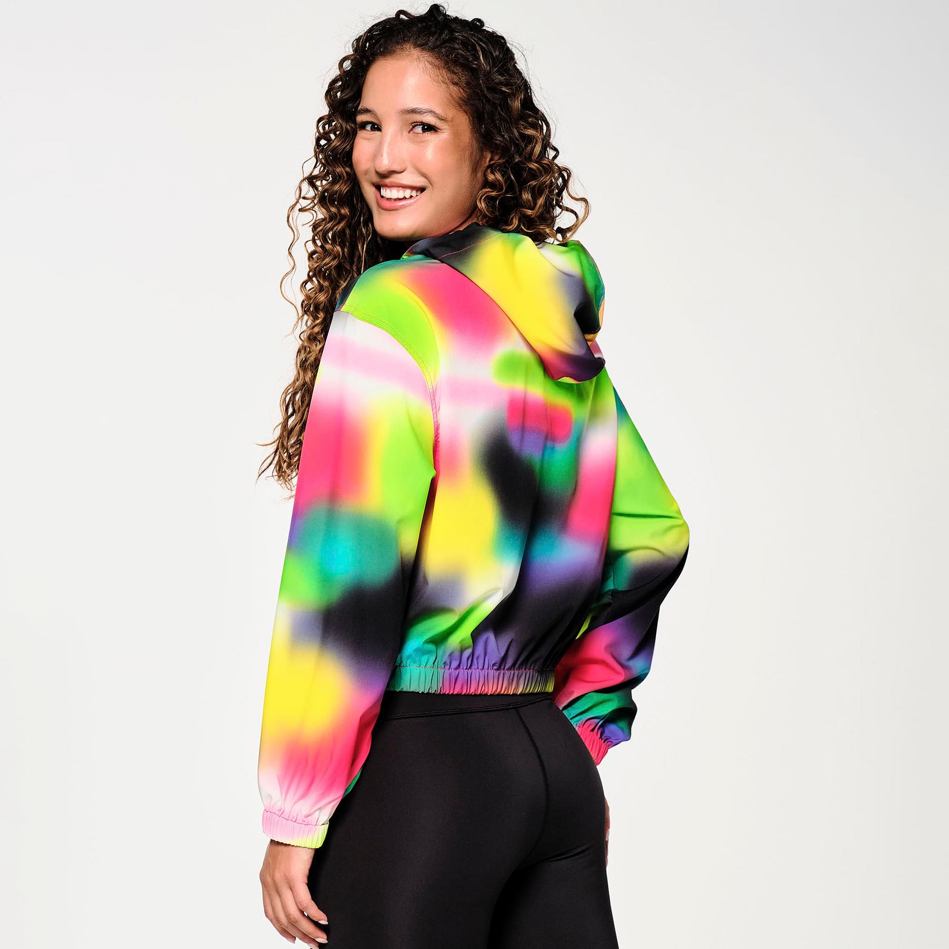 Zumba Tropidelic Zip-Up Jacket is the perfect blend of style and functionality for your active lifestyle. This zip front jacket features a trendy hoodie with a drawcord for a customizable fit. The encased elastic in the bottom opening and cuffs ensures a snug and comfortable feel during your workout sessions.