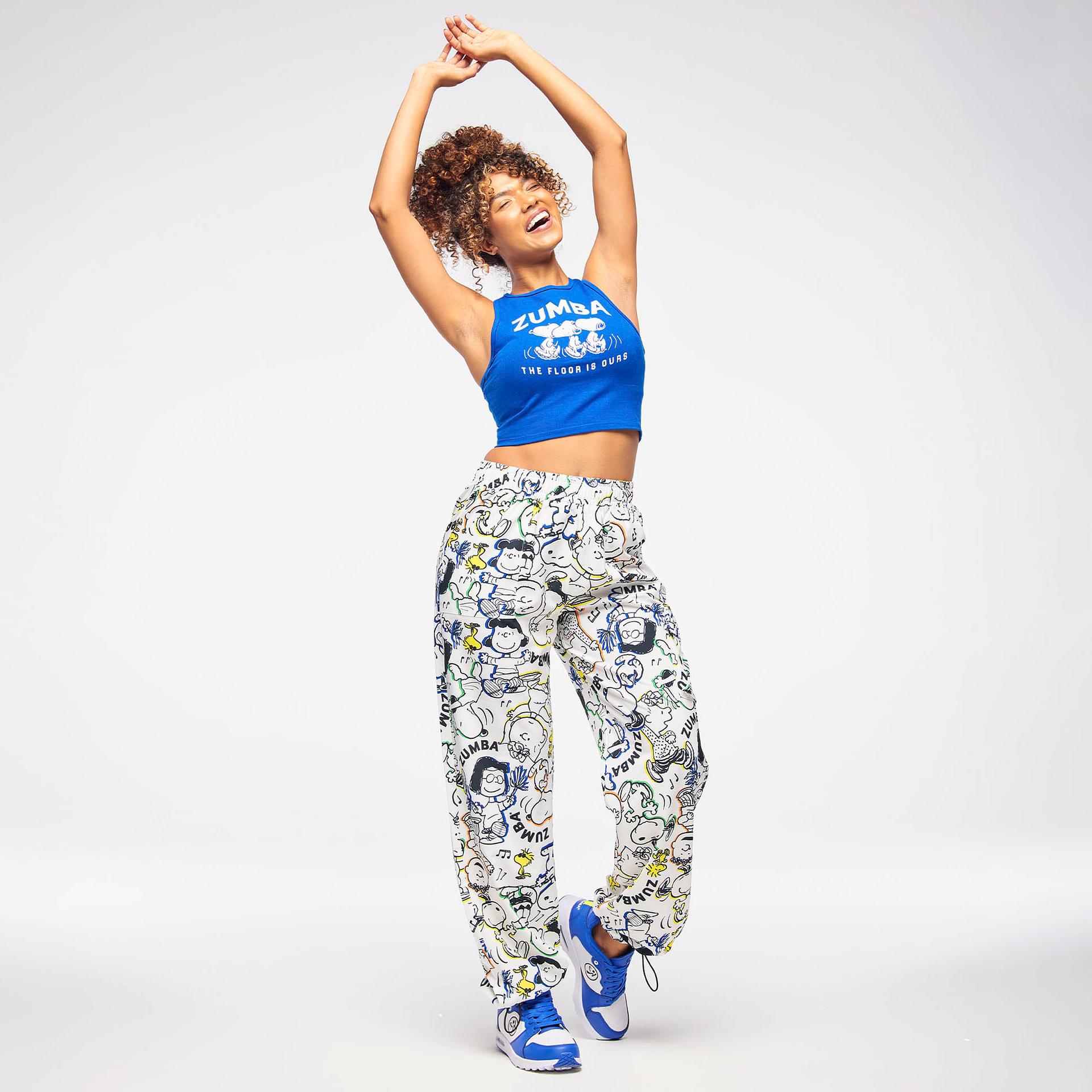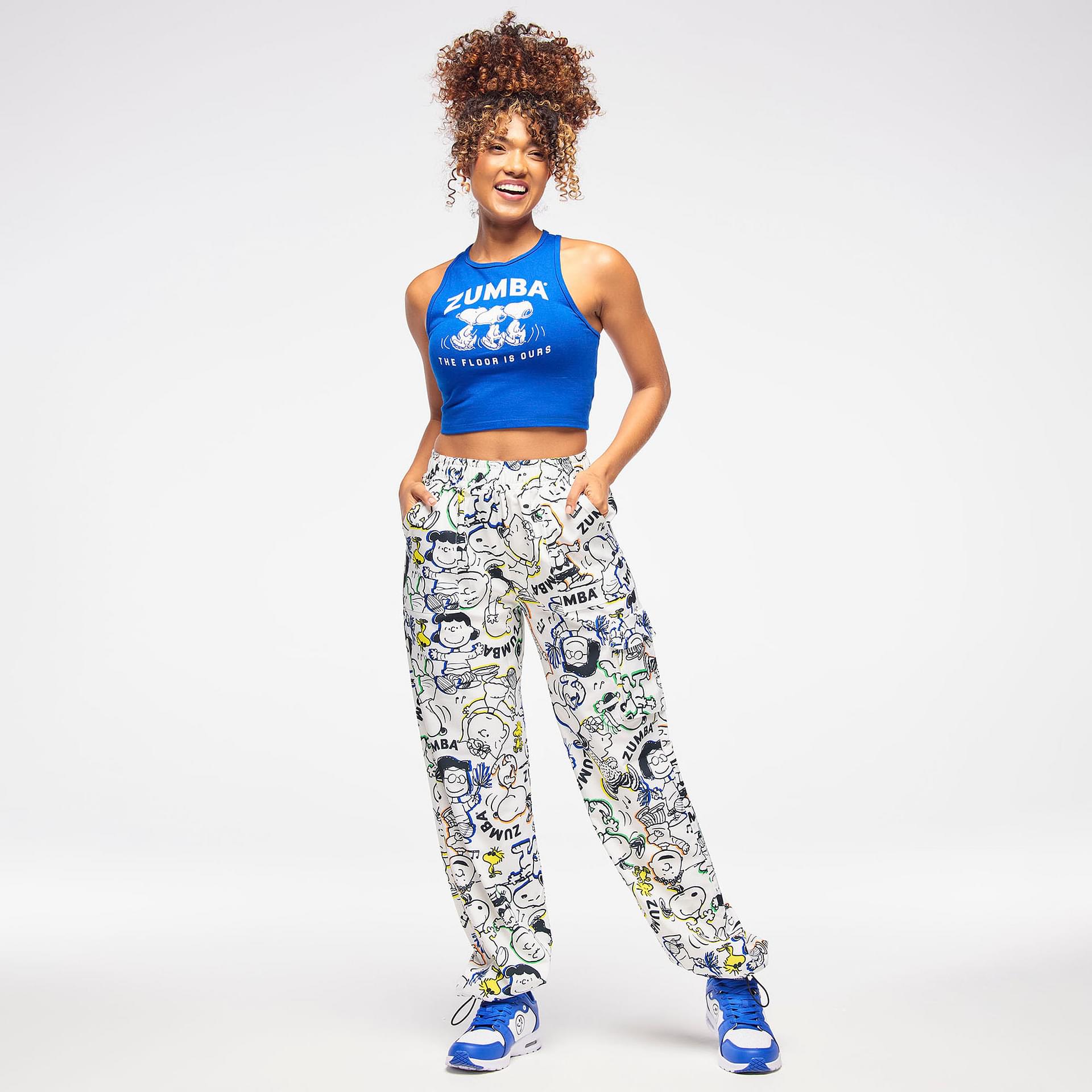 Adding a playful touch, the exclusive allover print features beloved Peanuts® characters, making these pants not just activewear, but a statement piece that showcases your personality. The Zumba® X Peanuts® branded rubber patch on the left cargo pocket further emphasizes the collaboration's unique charm.