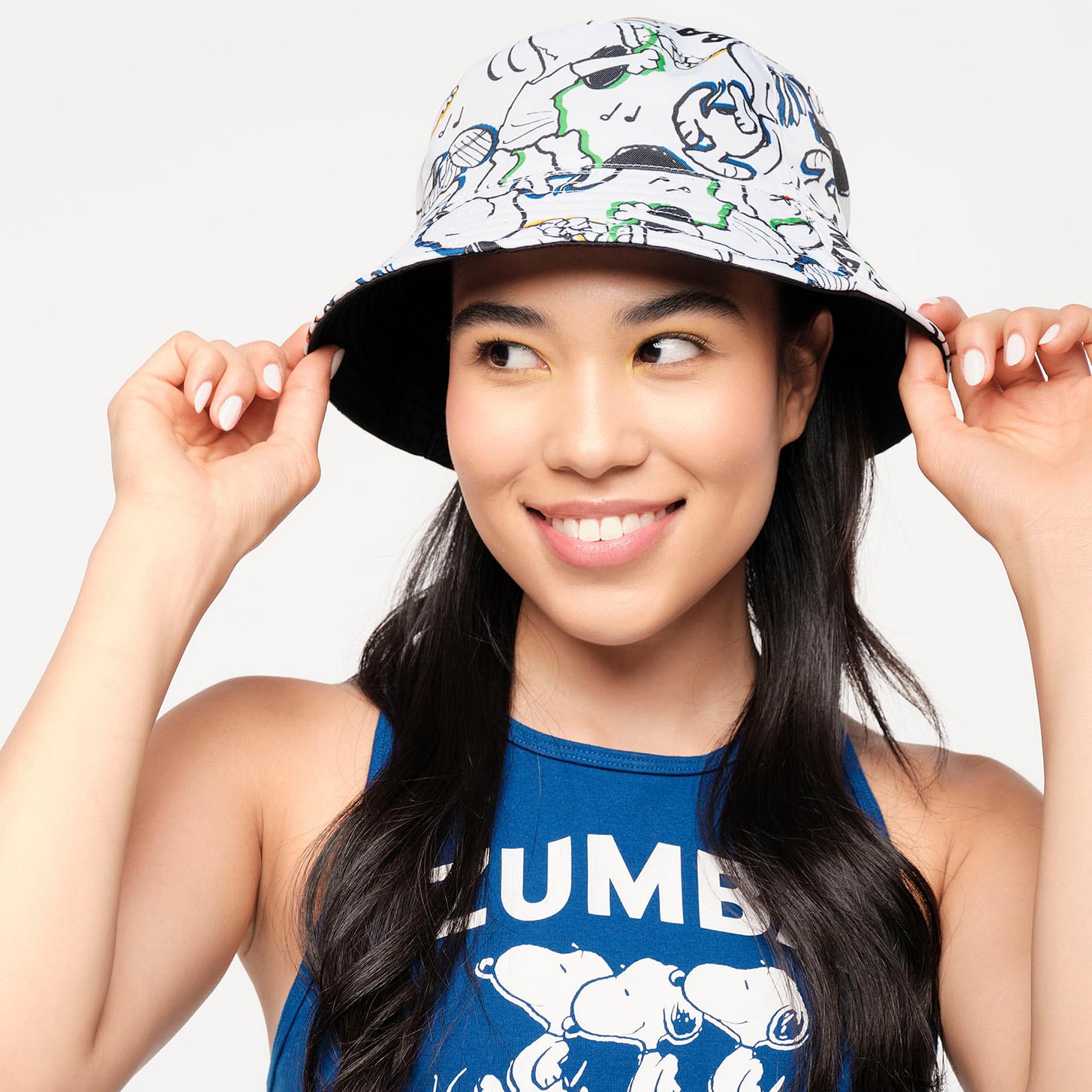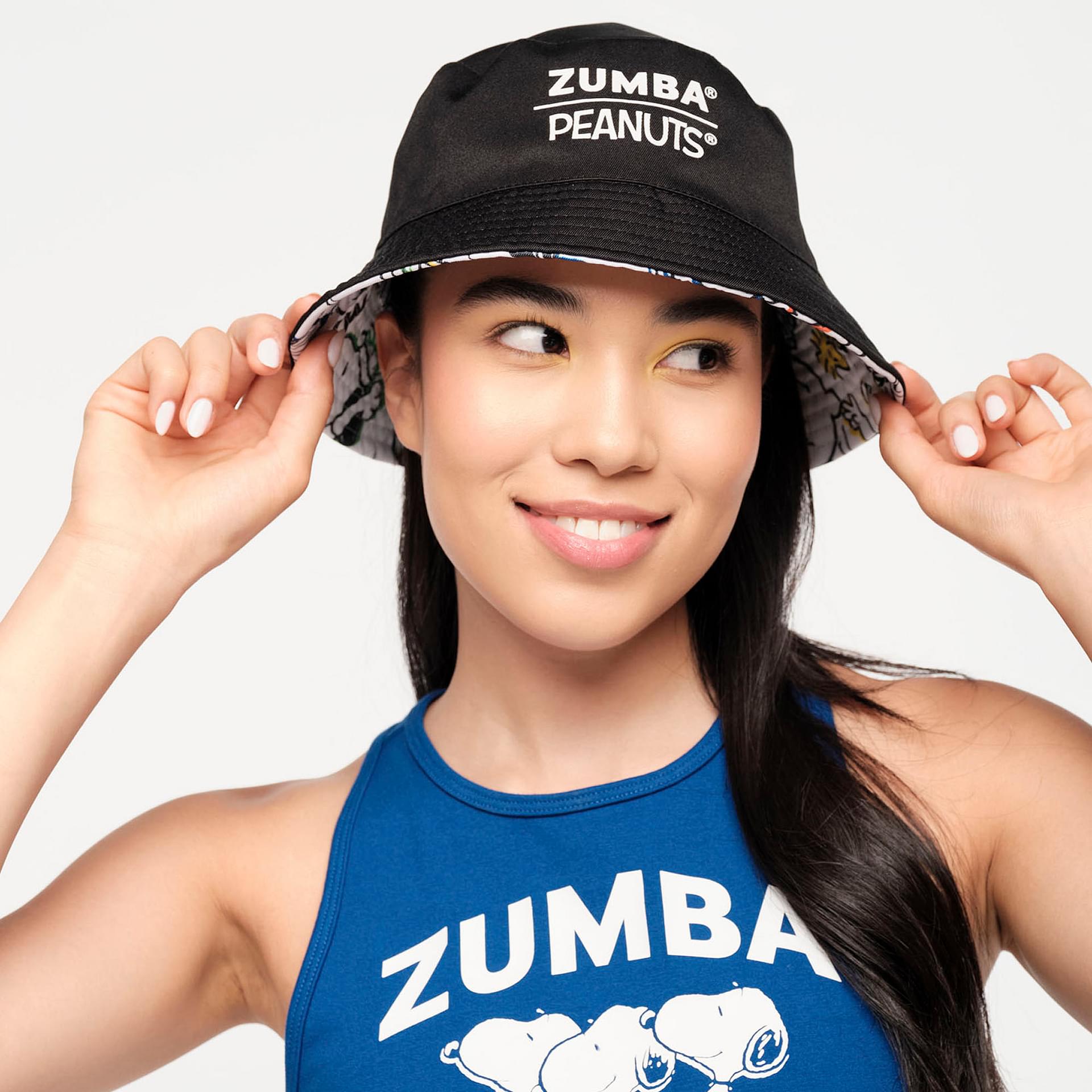 Step into a world where fun meets functionality with the Zumba X Peanuts Reversible Bucket Hat.